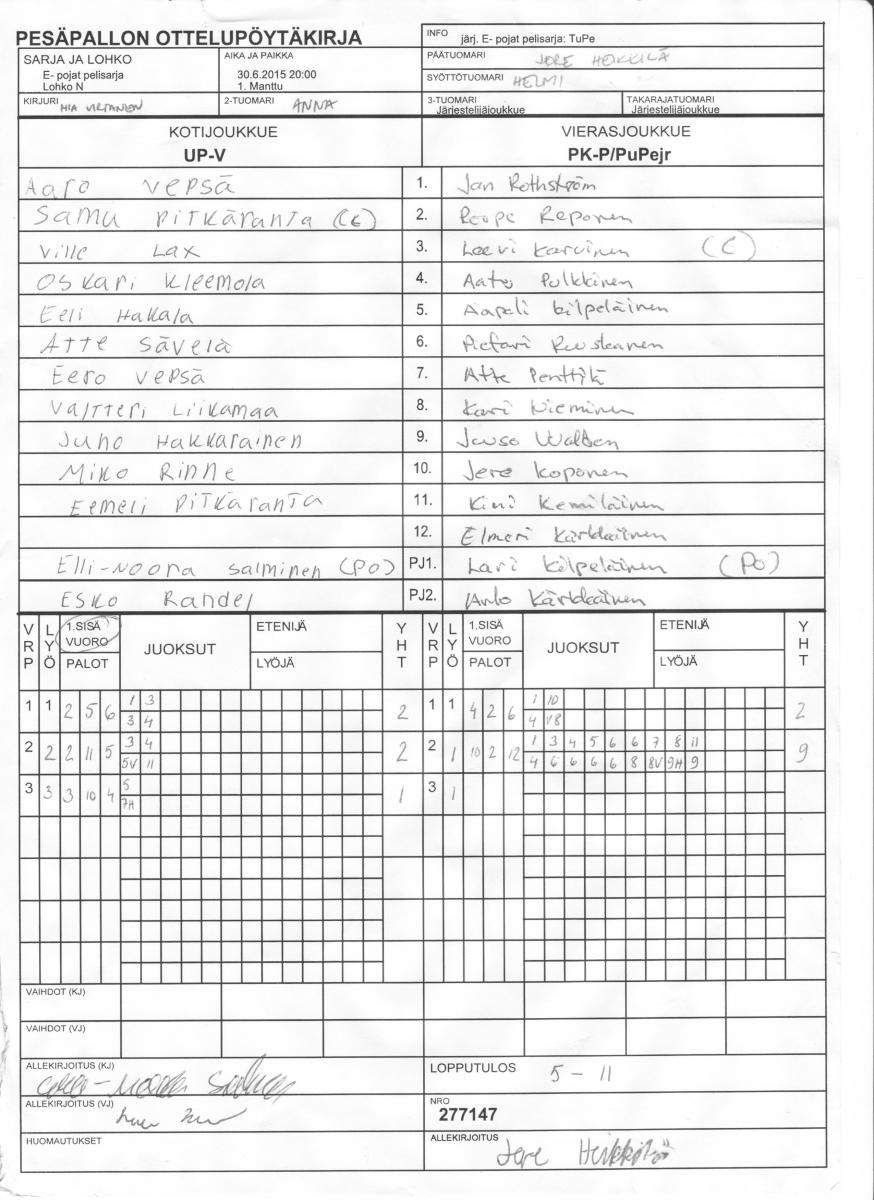 | 30.6.2015 20:00 | 1. Manttu | UP-V | PK-P/PuPejr | 5-11 | näytä |