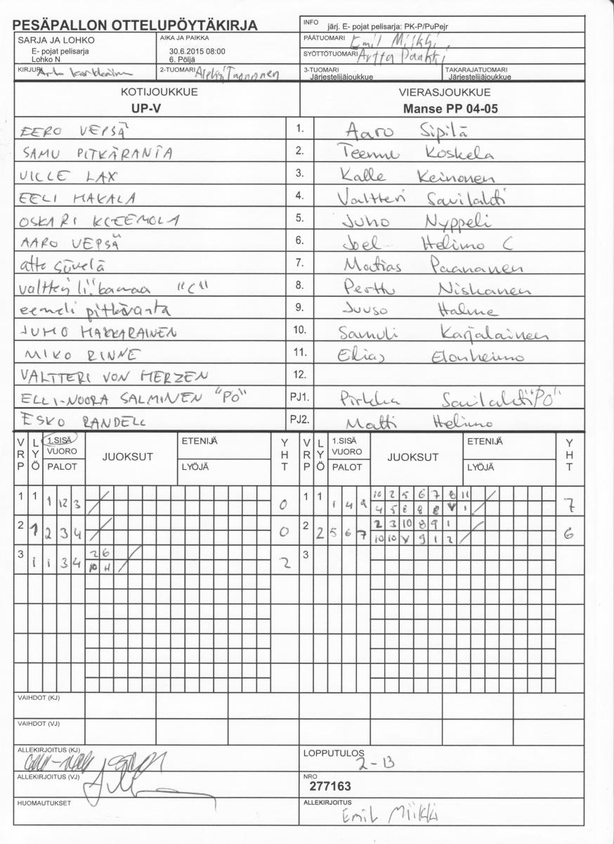 | 30.6.2015 08:00 | 6. Pöljä | UP-V | Manse PP 04-05 | 2-13 | näytä |