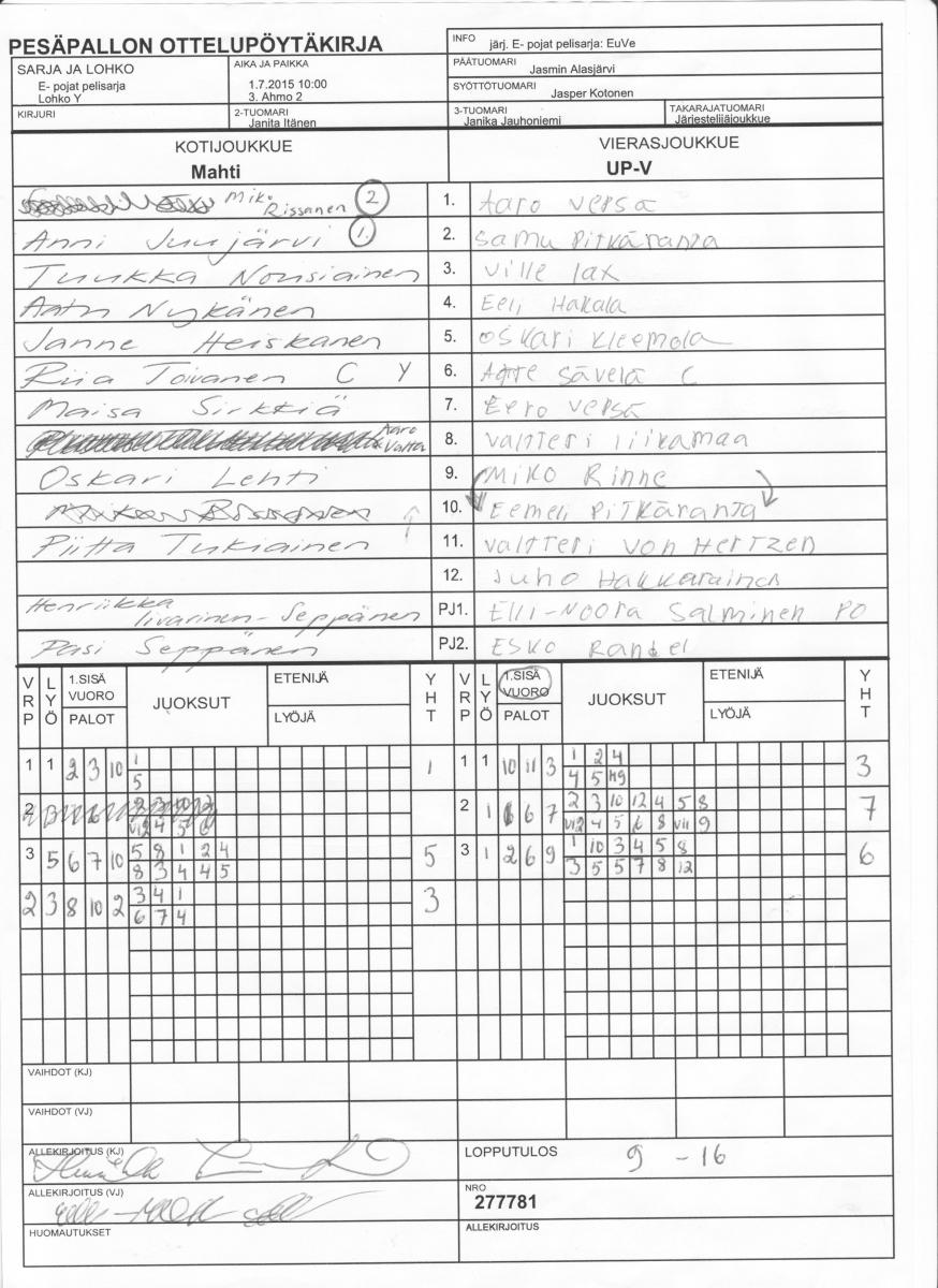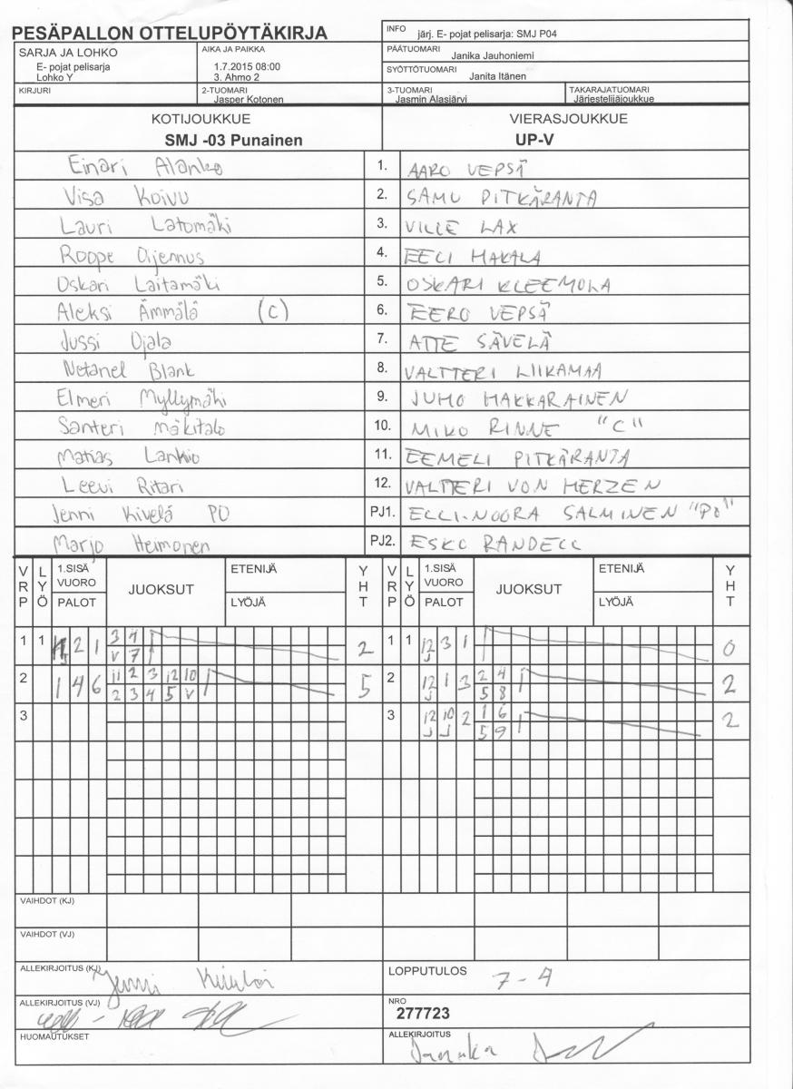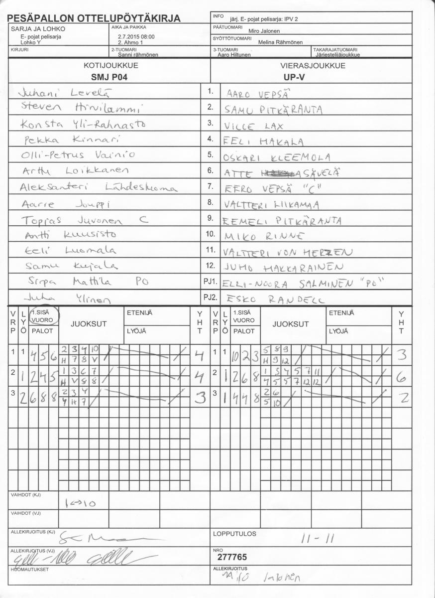 | Lohko Y | 1.7.2015 14:00 | 6. Pöljä | SMJ P04 | Mahti | UP-V |