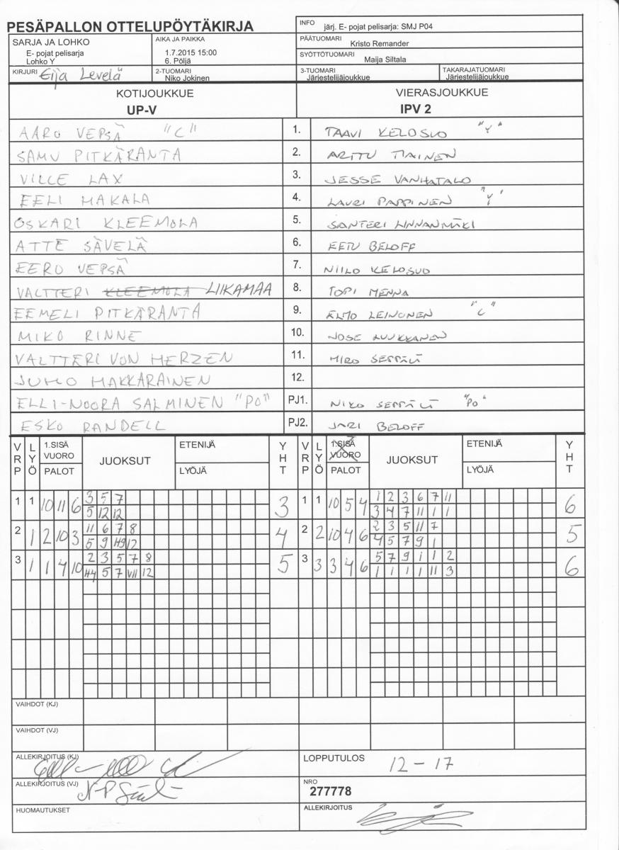| 1.7.2015 15:00 | 6. Pöljä | UP-V | IPV 2 | 12-17 | näytä |