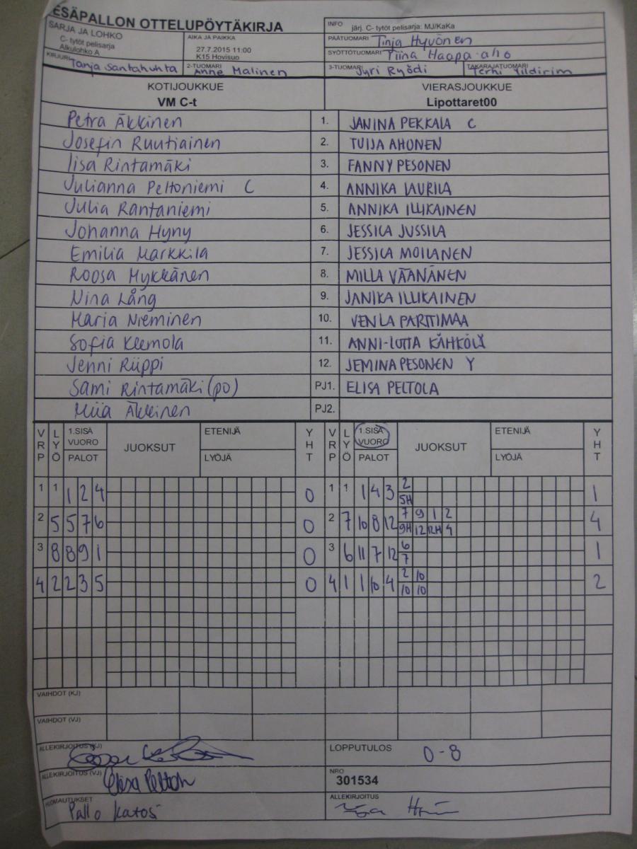 | 27.7.2015 11:00 | K15 Hovisuo | VM C-t | Lipottaret00 | 0-8 | näytä |