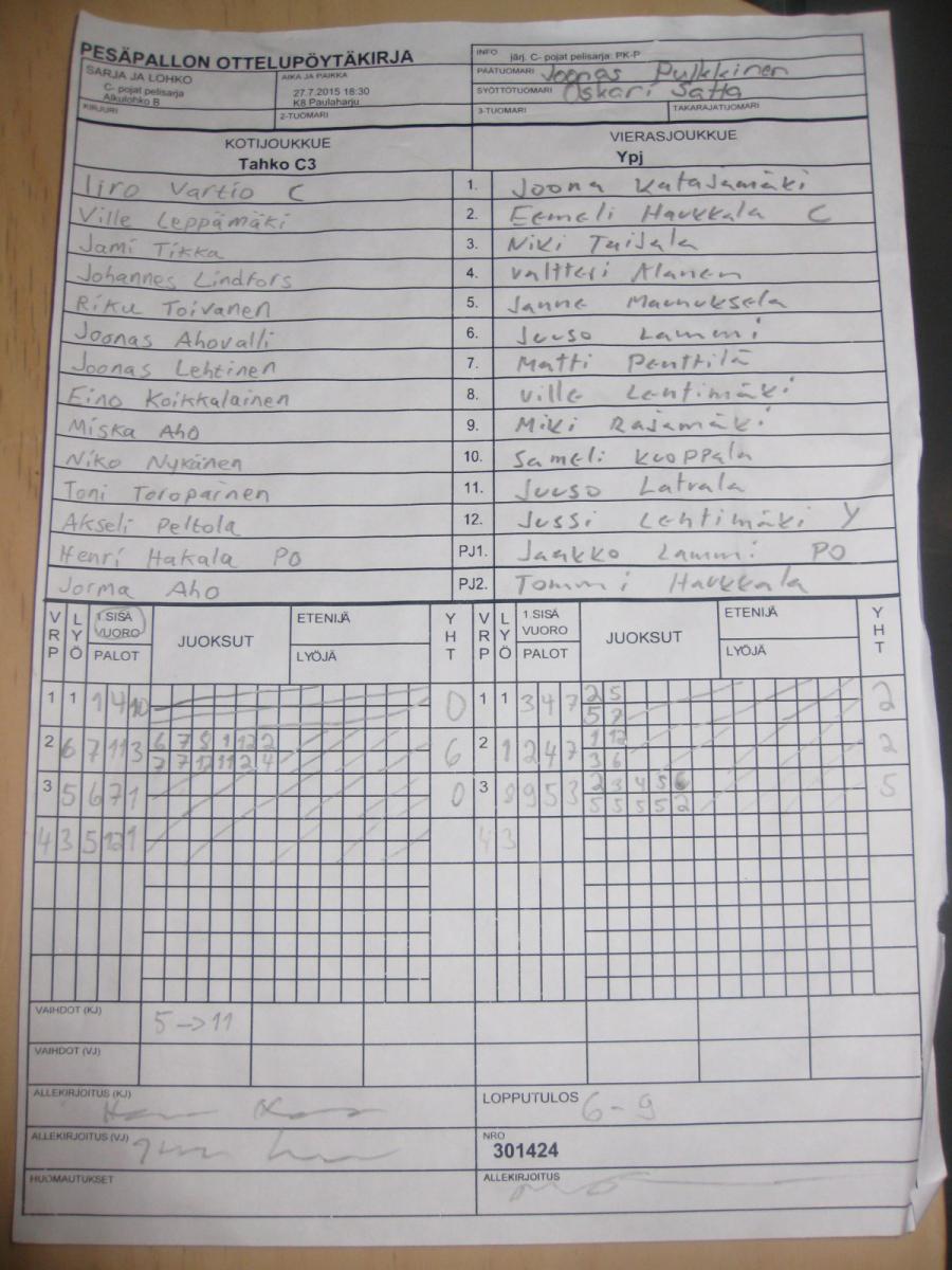 | 27.7.2015 18:30 | K17 Ritaharju | Tahko C3 | Ypj | 6-9 | näytä |