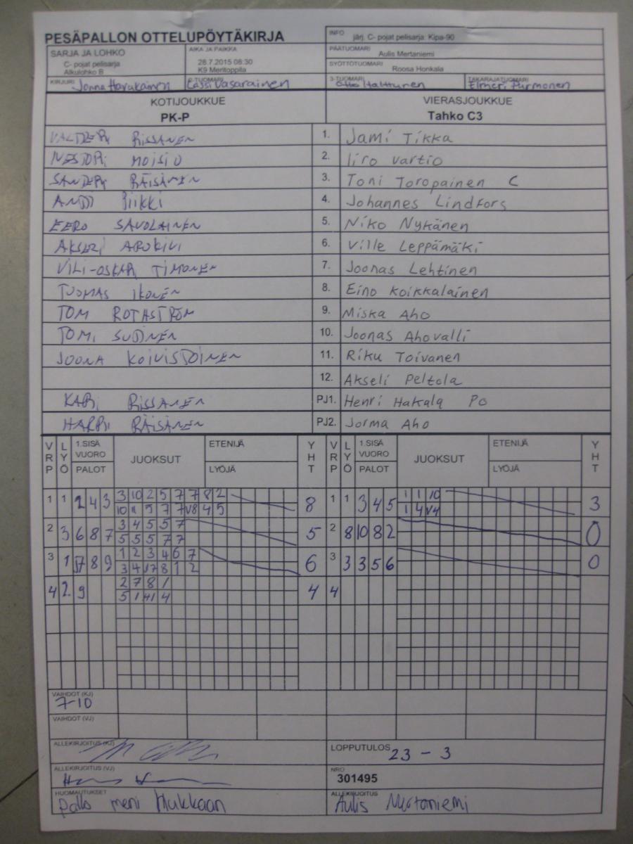 | 30.7.2015 08:30 | K23 Hönttämäki | Tahko C3 | Lippo 2 | 1-21 |