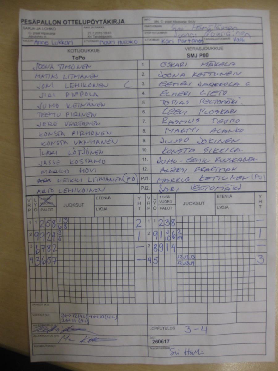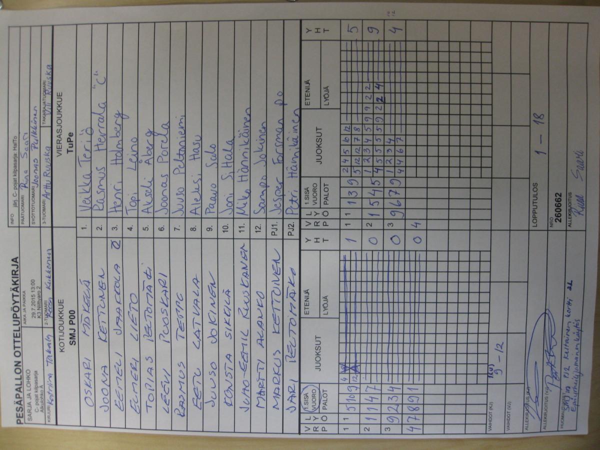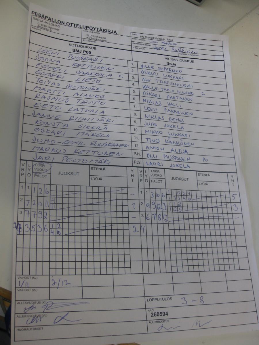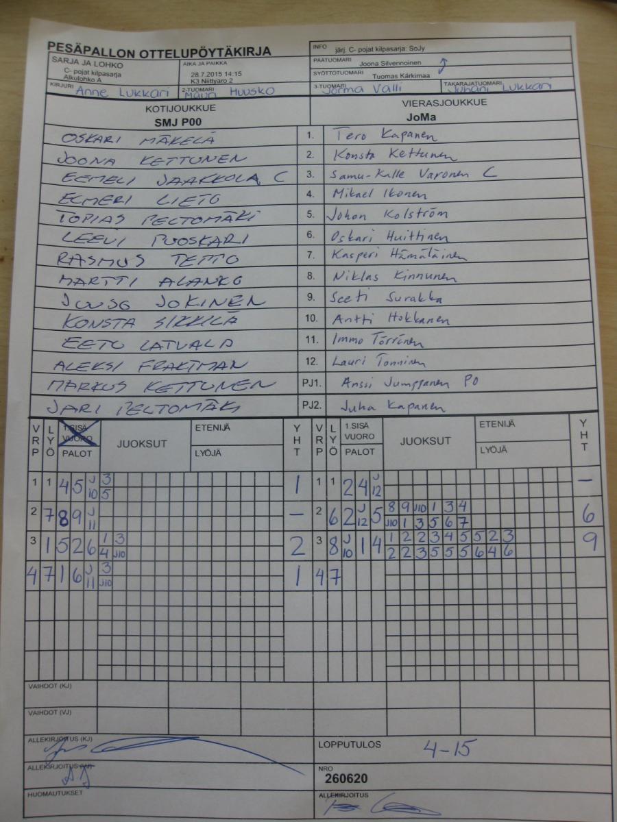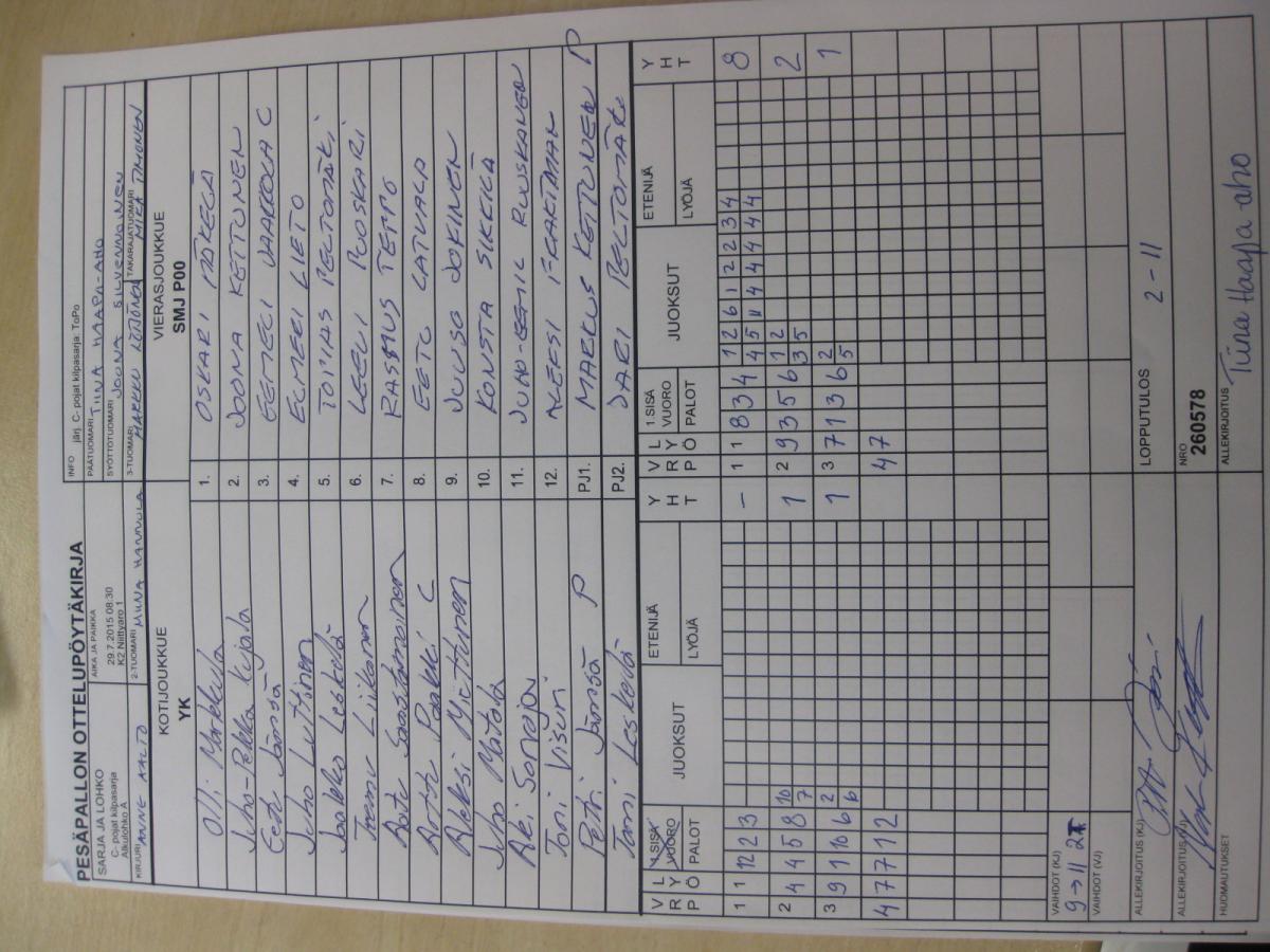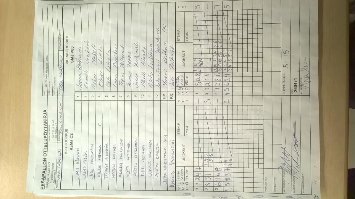 | Sijat 5-6 | 31.7.2015 11:15 | K1 Stadion Oulu | Lippo 1 | JoMa | SMJ P00 |