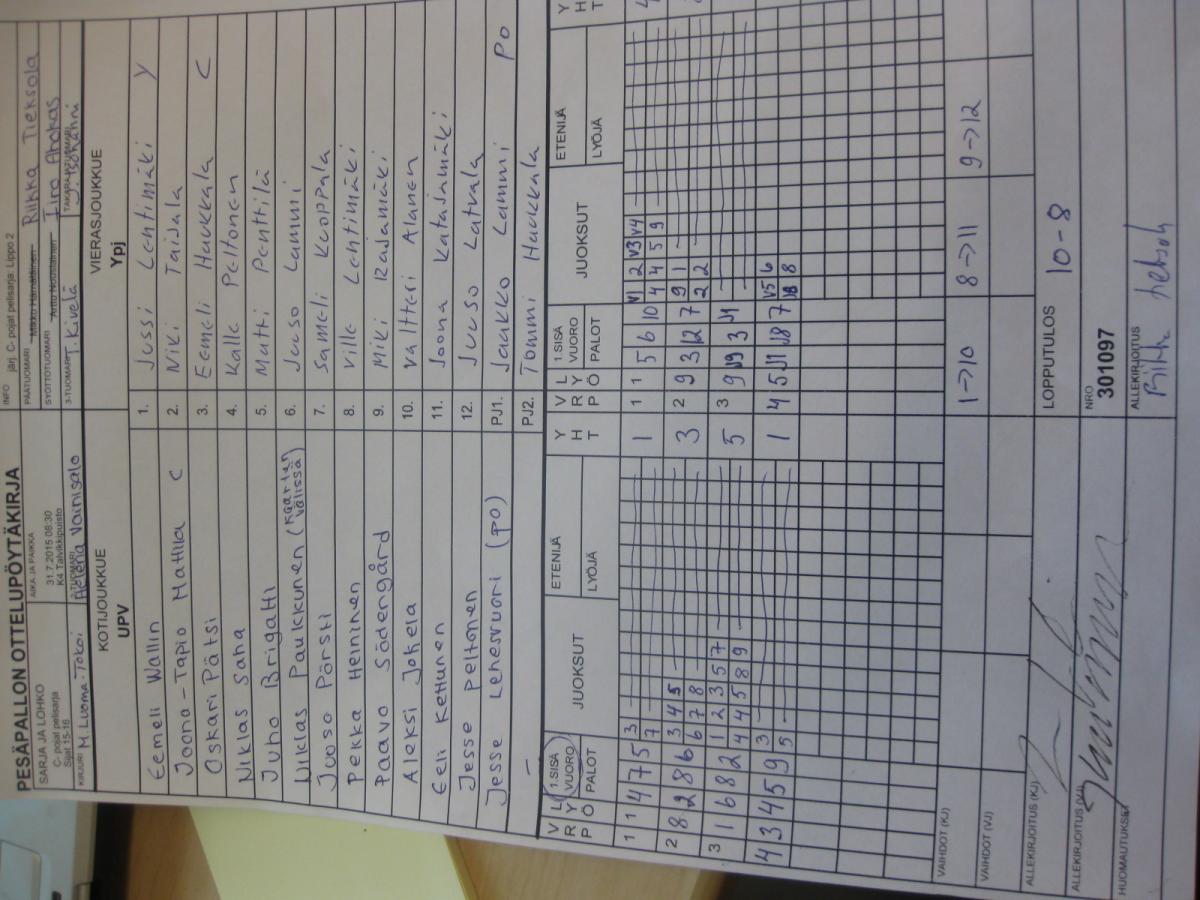 | 31.7.2015 08:30 | K4 Talvikkipuisto | UPV | Ypj | 10-8 | näytä |