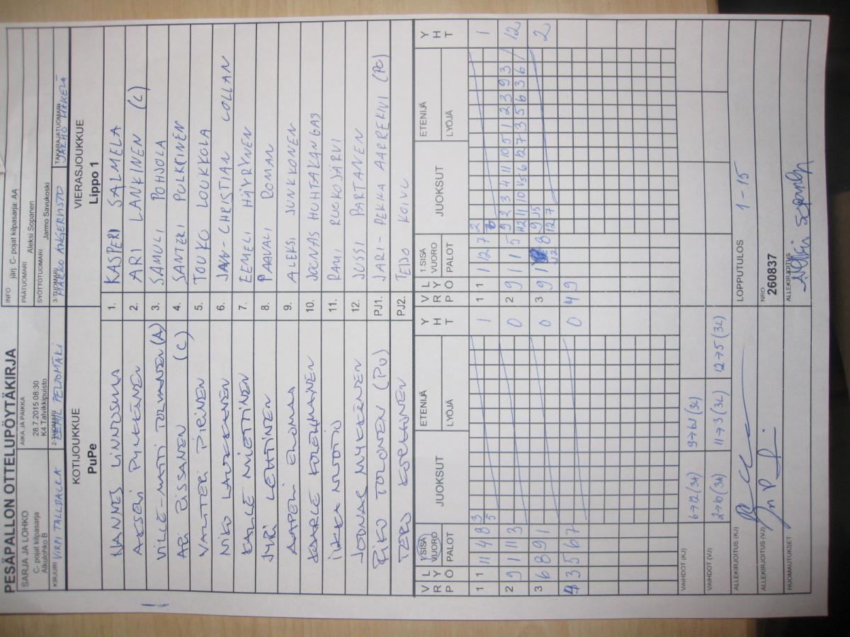 | Sijat 11-12 | 31.7.2015 10:00 | K1 Stadion Oulu | SMJ P00 | Tahko C1 | Lippo 1 |