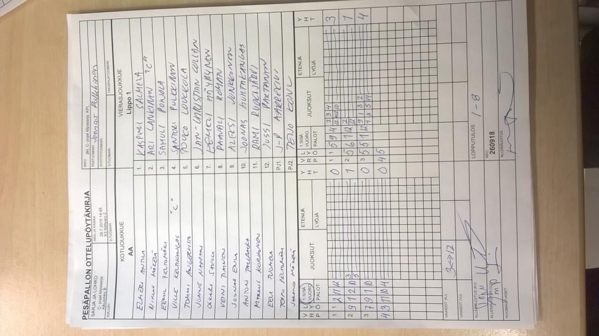 | 31.7.2015 11:15 | K1 Stadion Oulu | Lippo 1 | JoMa | 4-6 | näytä |
