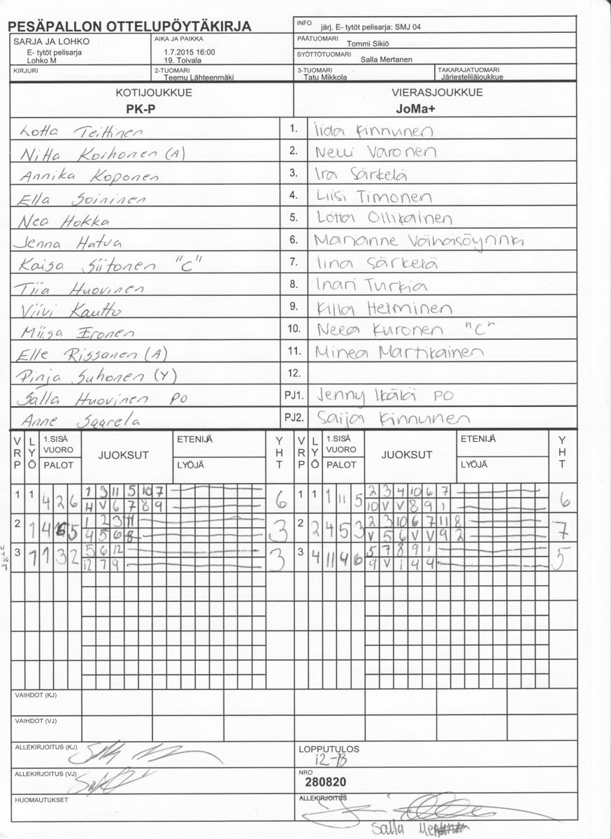 | 1.7.2015 16:00 | 19. Toivala | PK-P | JoMa+ | 12-18 | näytä |