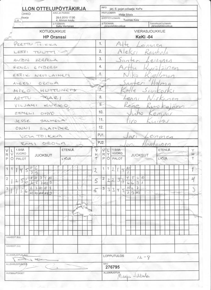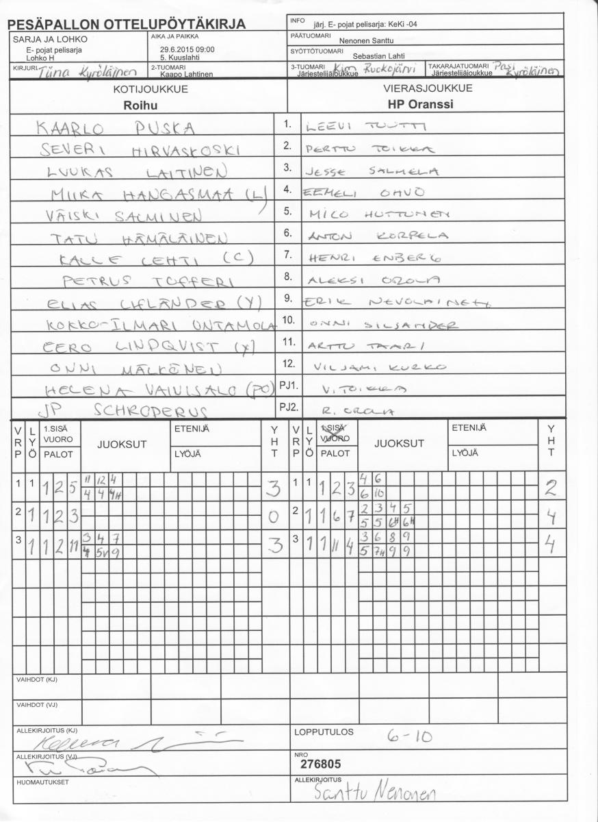 | Lohko H | 29.6.2015 10:00 | 5. Kuuslahti | KeKi -04 | EuVe | HP Oranssi |