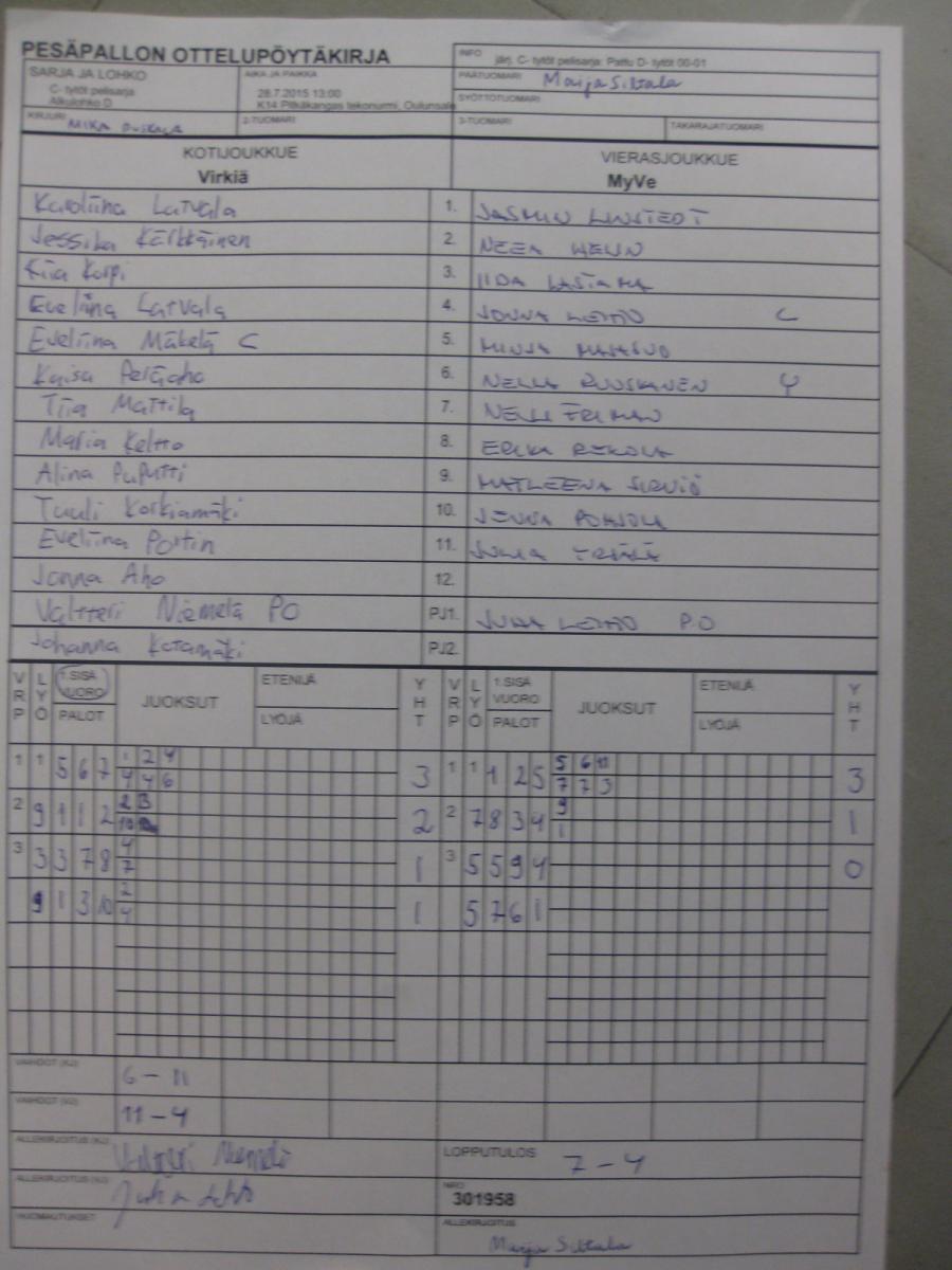 | 28.7.2015 13:00 | K14 Pitkäkangas tekonurmi, Oulunsalo | Virkiä | MyVe | 7-4 | näytä |