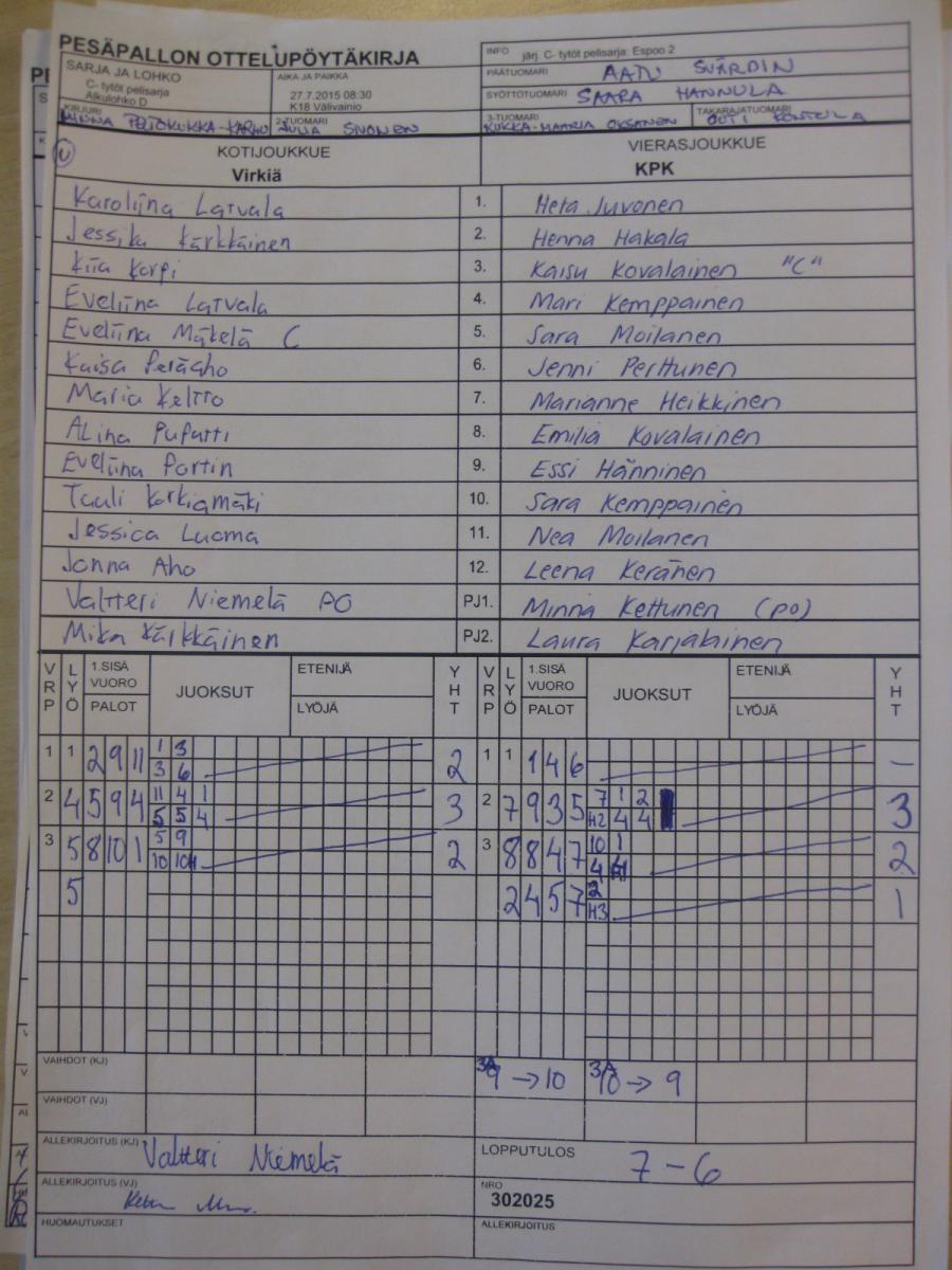 | 27.7.2015 08:30 | K18 Välivainio | Virkiä | KPK | 7-6 | näytä |