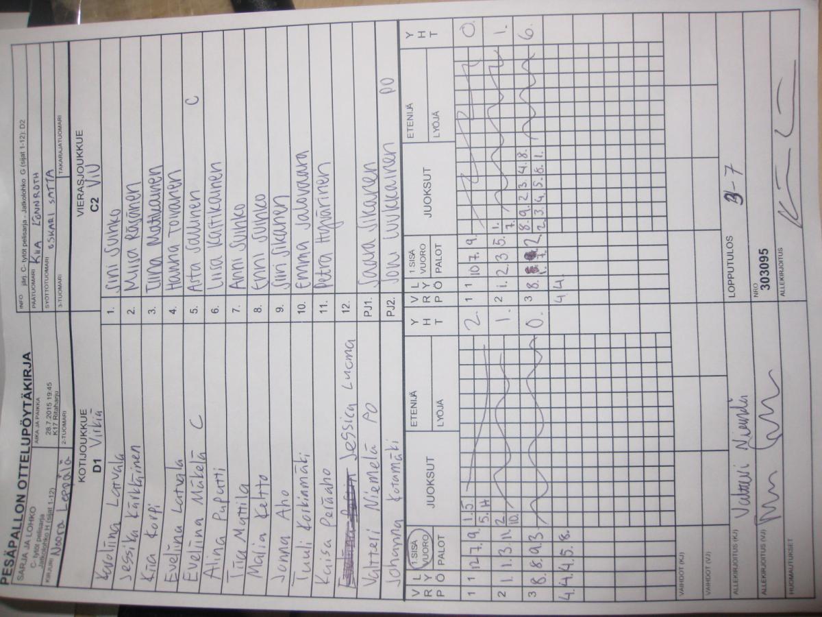 | Jatkolohko H (sijat 1-12) | 30.7.2015 14:15 | K16 Pitkäkangas hiekka, Oulunsalo | ViU | Tahko 2 | Virkiä |