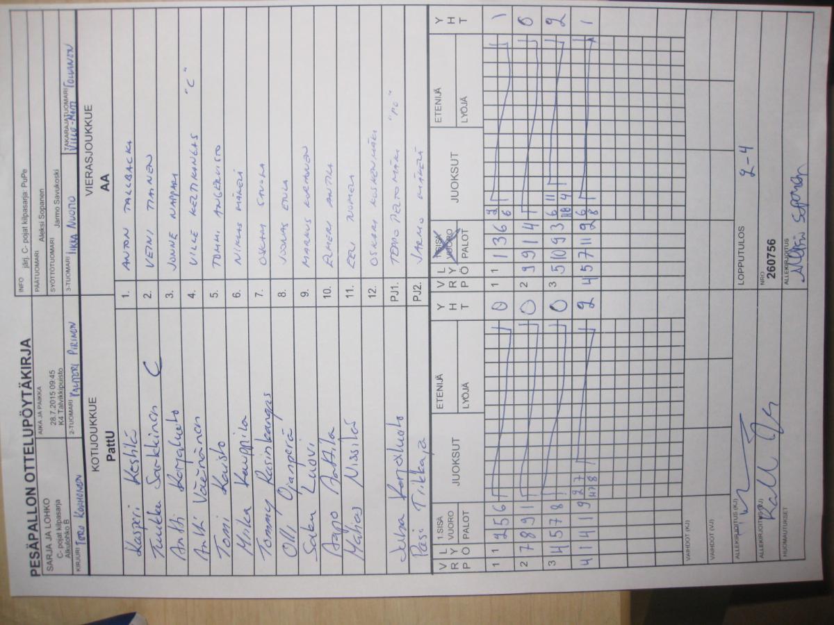 | C- pojat kilpasarja - Alkulohko B | 29.7.2015 08:30 | K3 Niittyaro 2 | KoU-00 | PuPe | PattU |
