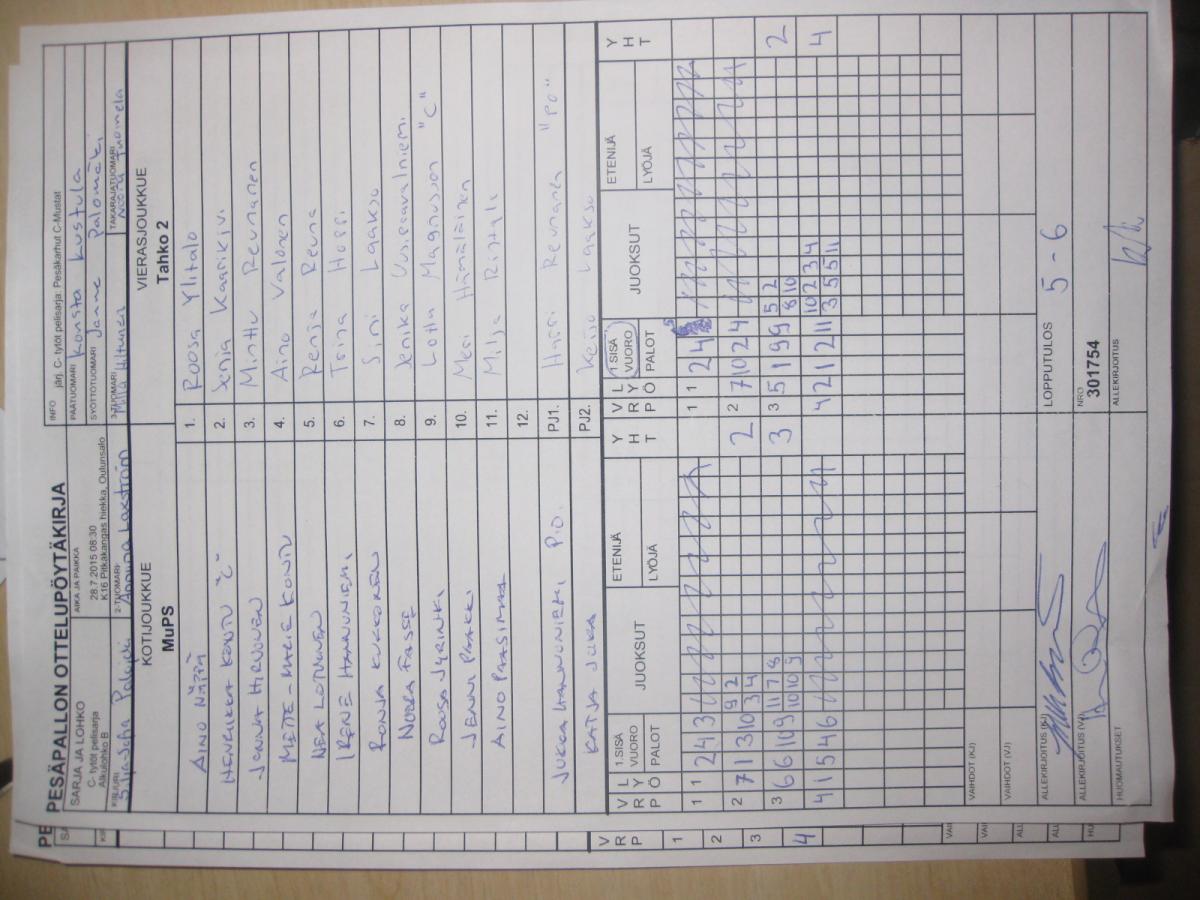 | Jatkolohko H (sijat 1-12) | 28.7.2015 19:45 | K16 Pitkäkangas hiekka, Oulunsalo | Tahko 2 | MJ/KaKa | MuPS |
