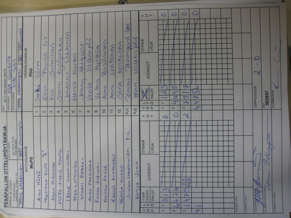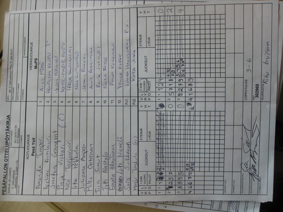 | 31.7.2015 08:30 | K16 Pitkäkangas hiekka, Oulunsalo | MJ/KaKa | MuPS | 3-2 |