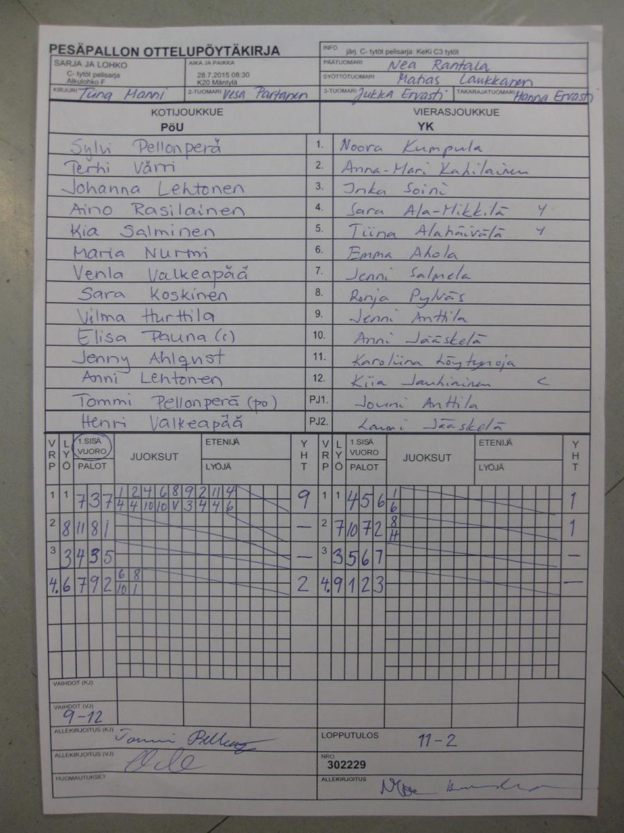 | 28.7.2015 08:30 | K20 Mäntylä | PöU | YK | 11-2 | näytä |