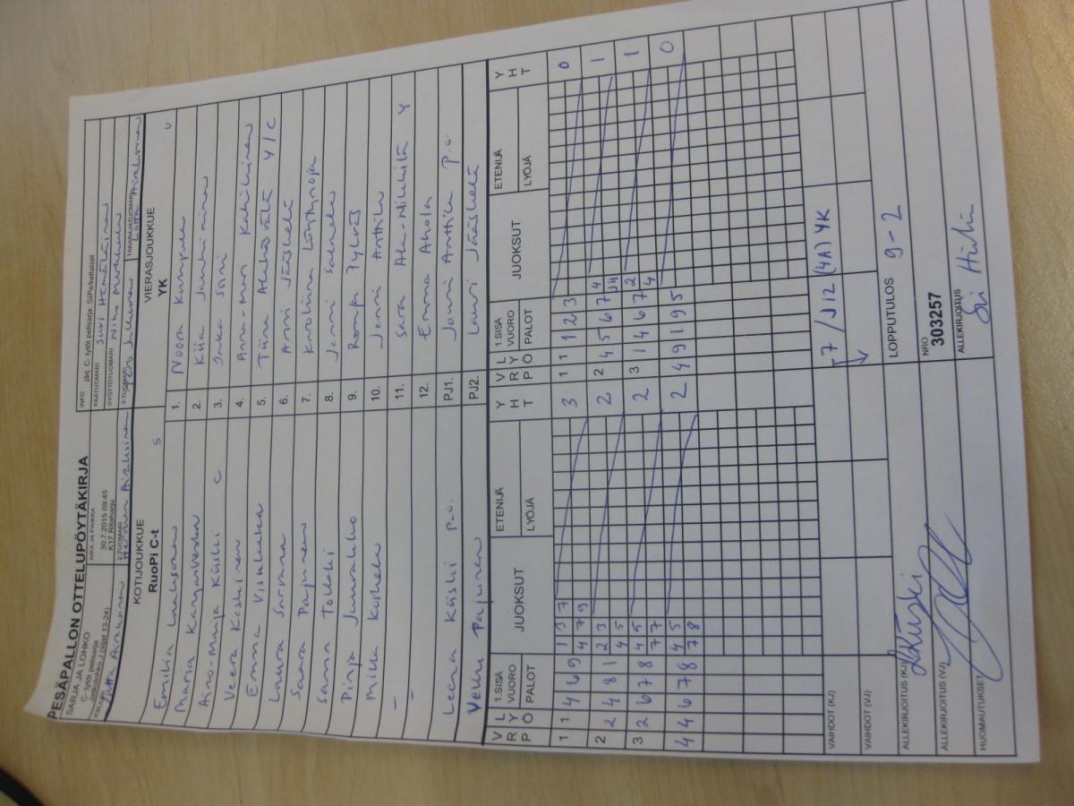 | Jatkolohko K (sijat 13-24) | 28.7.2015 19:45 | K21 Teeripuisto | Roihu C-tytöt | KK-V | YK |