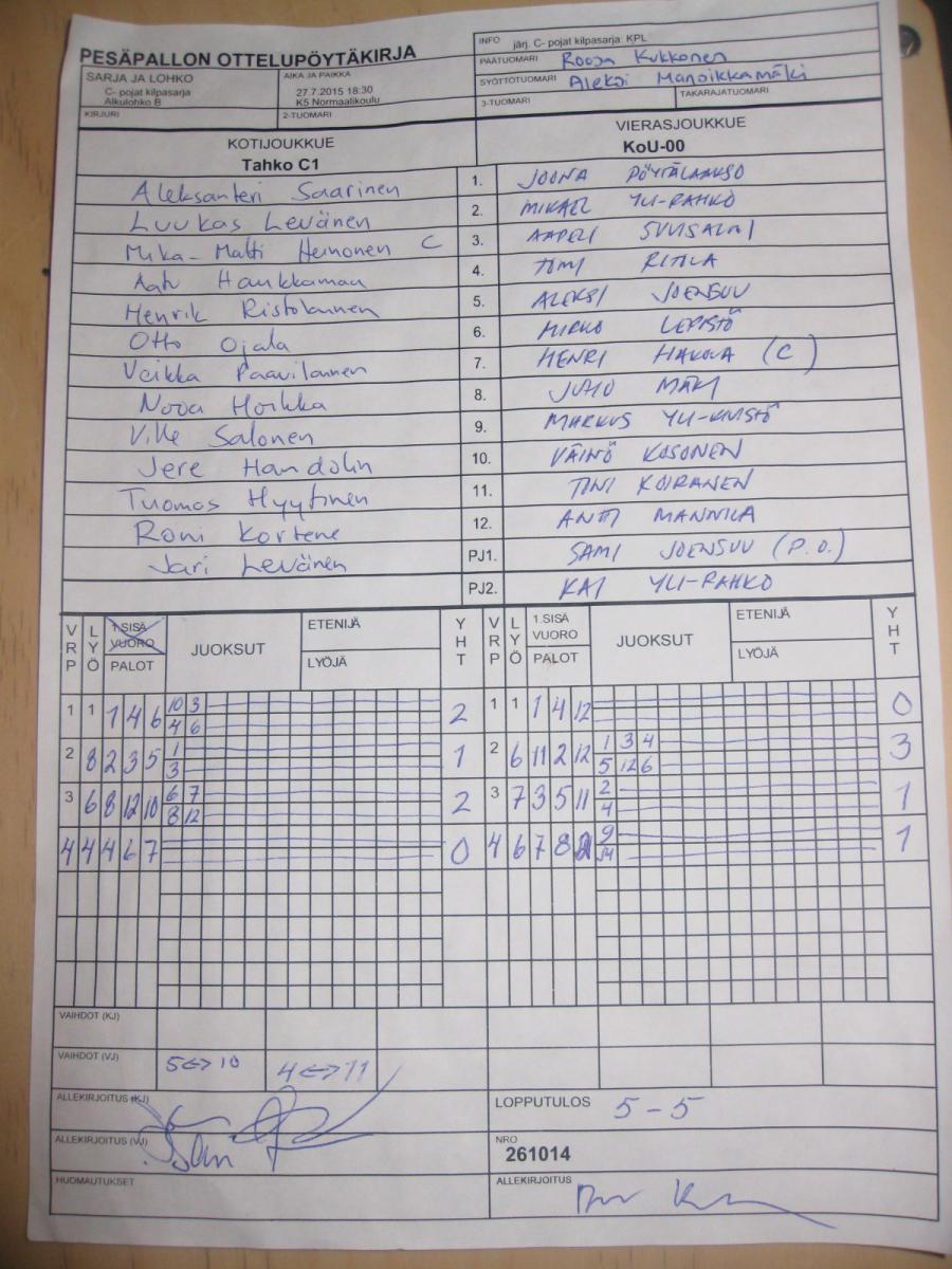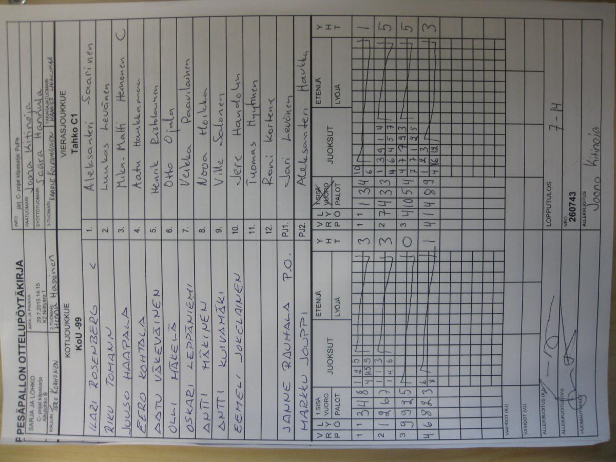| C- pojat kilpasarja - Alkulohko B | 27.7.2015 19:45 | K5 Normaalikoulu | KPL | PuPe | Tahko C1 |