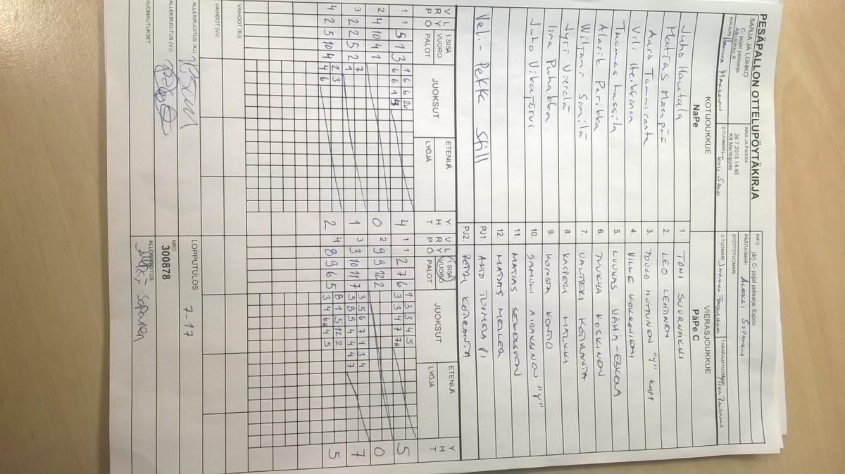 | Sijat 17-19 | 31.7.2015 11:00 | K7 Haapalehto | Tahko C3 | NaPe | PäPe C |