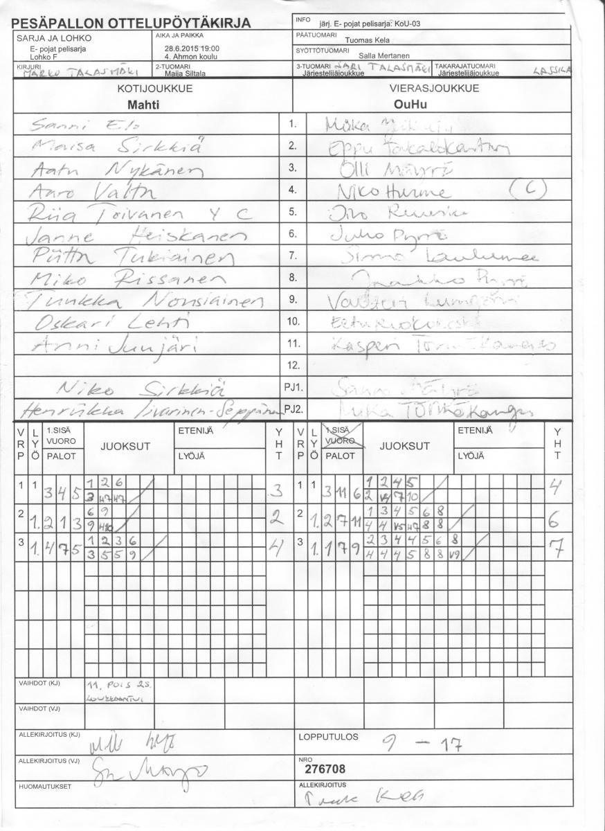 | 28.6.2015 19:00 | 4. Ahmon koulu | Mahti | OuHu | 9-17 | näytä |