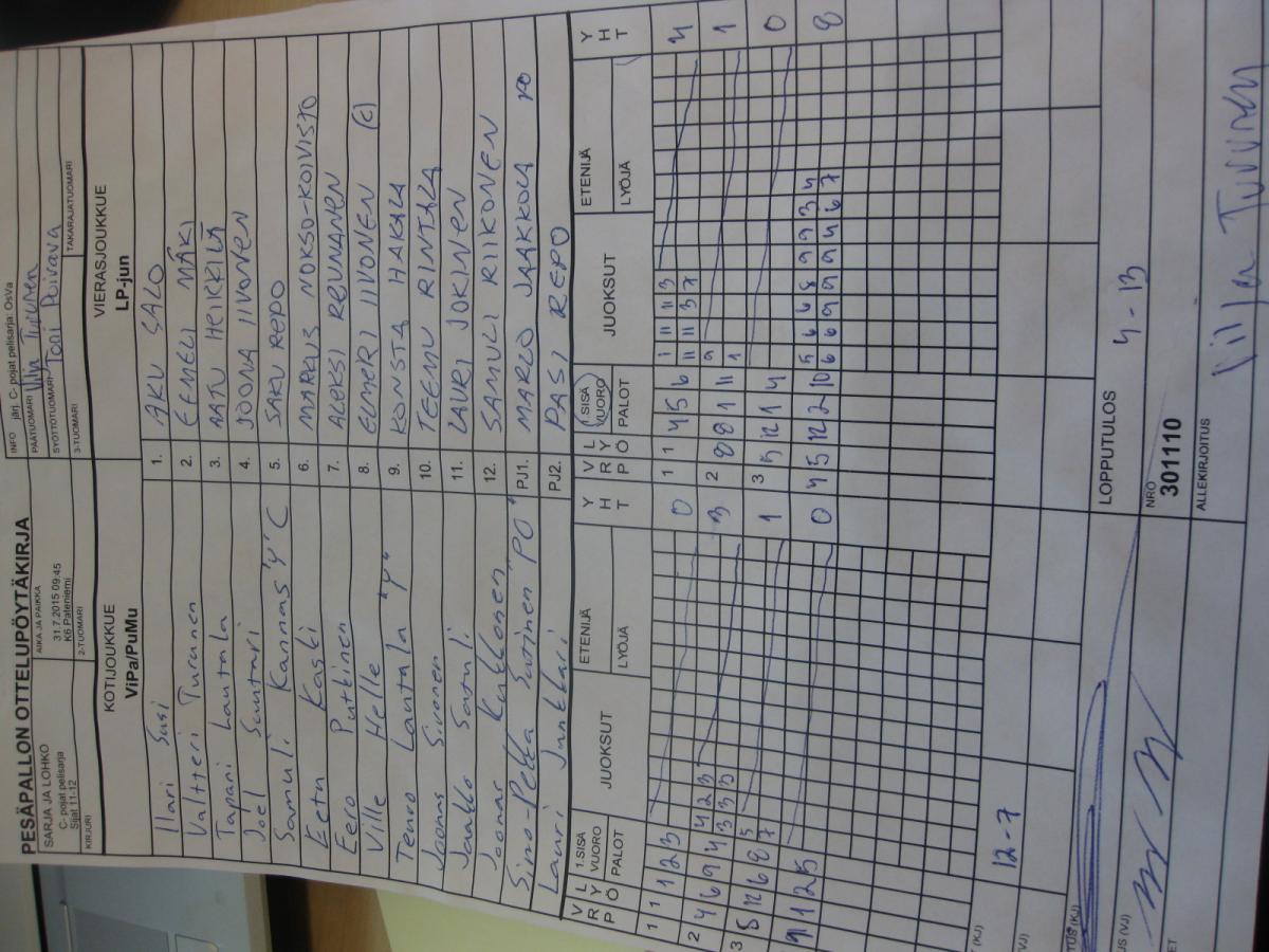 | 31.7.2015 09:45 | K6 Pateniemi | ViPa/PuMu | LP-jun | 4-13 | näytä |