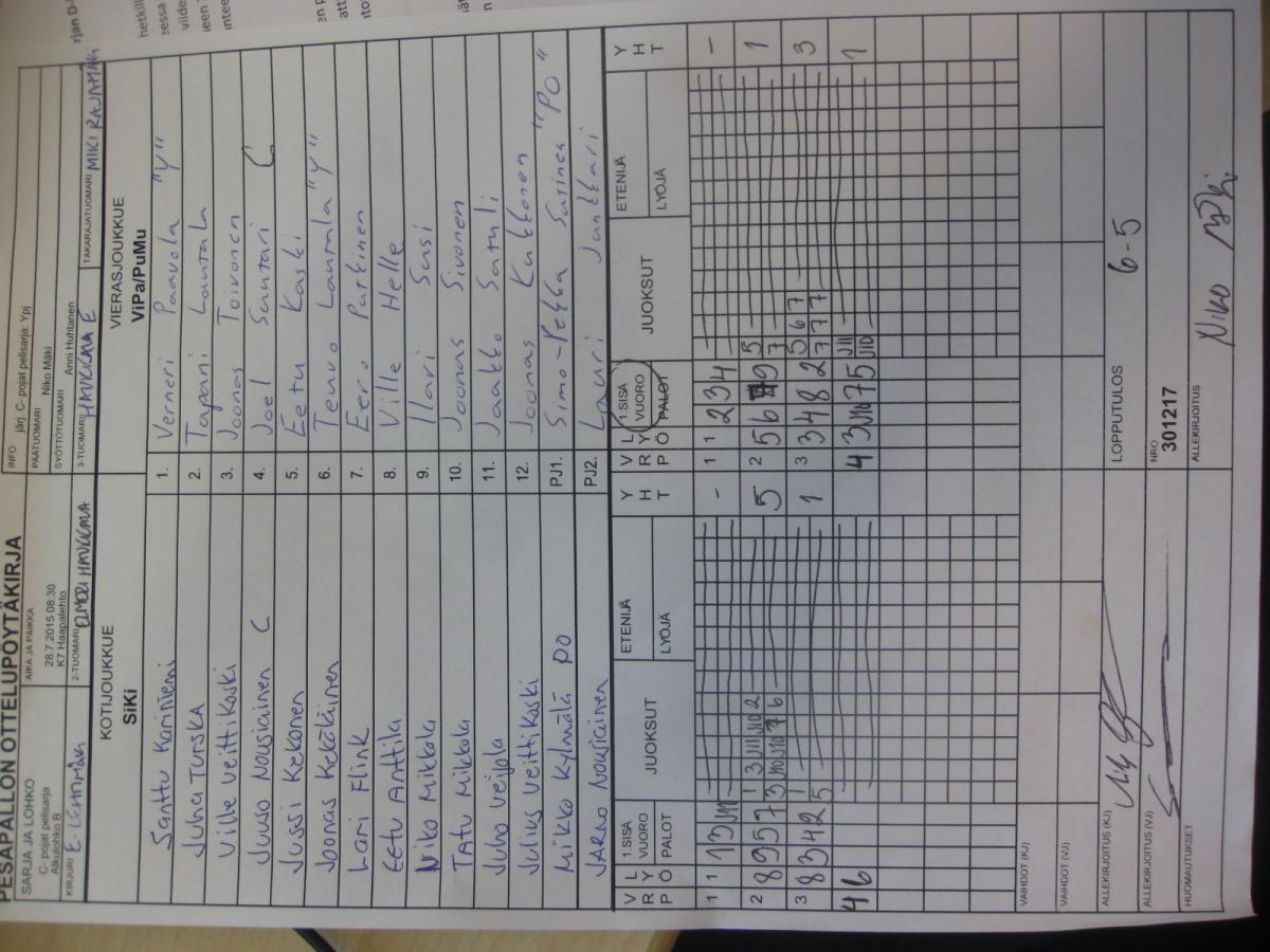 | 28.7.2015 08:30 | K7 Haapalehto | SiKi | ViPa/PuMu | 6-5 | näytä |