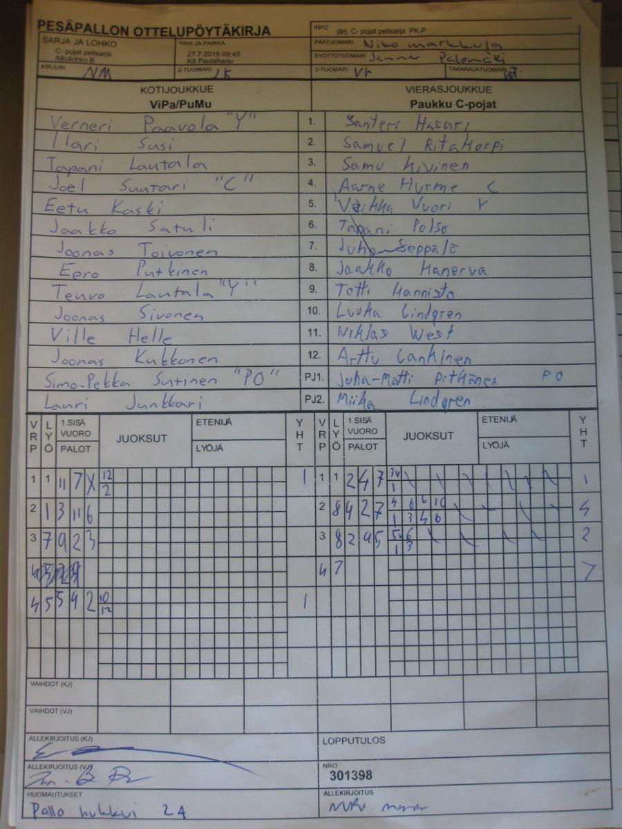 | 27.7.2015 09:45 | K8 Paulaharju | ViPa/PuMu | Paukku C-pojat | 2-7 | näytä |