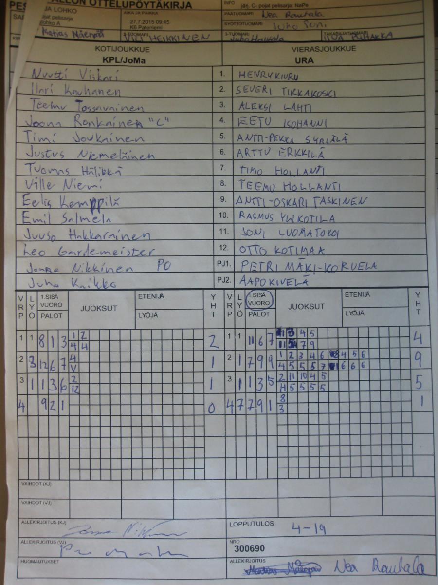| 27.7.2015 09:45 | K6 Pateniemi | KPL/JoMa | URA | 4-19 | näytä |