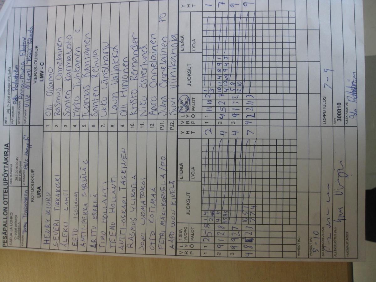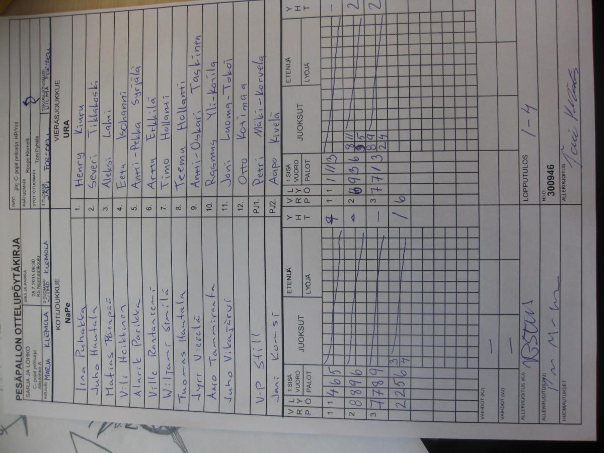 | Alkulohko A | 28.7.2015 09:45 | K5 Normaalikoulu | LP-jun | HP/Ysit | URA |