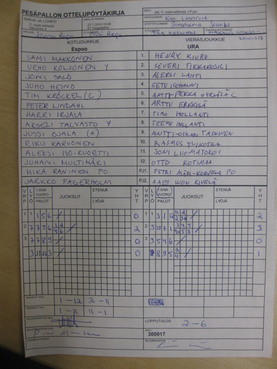 | 28.7.2015 18:30 | K2 Niittyaro 1 | LP-jun | URA | 5-16 | näytä |