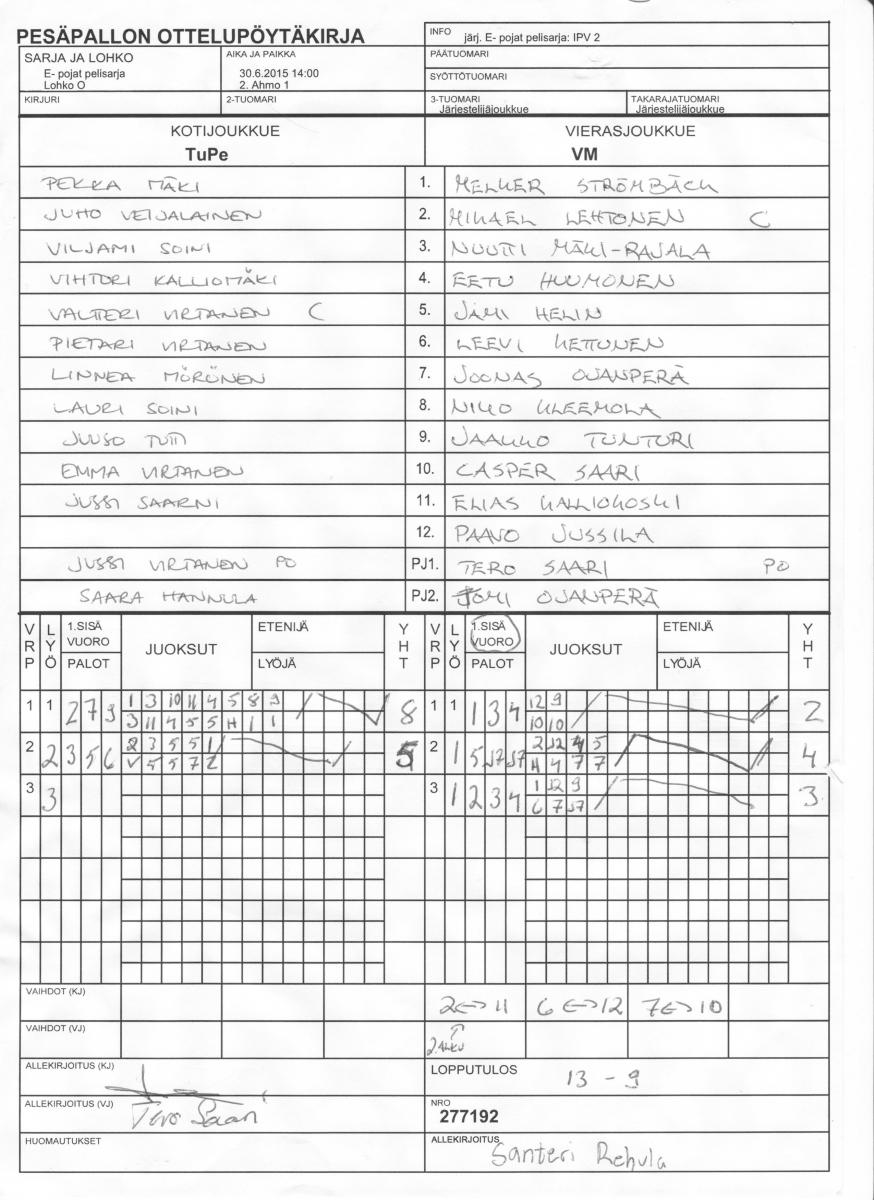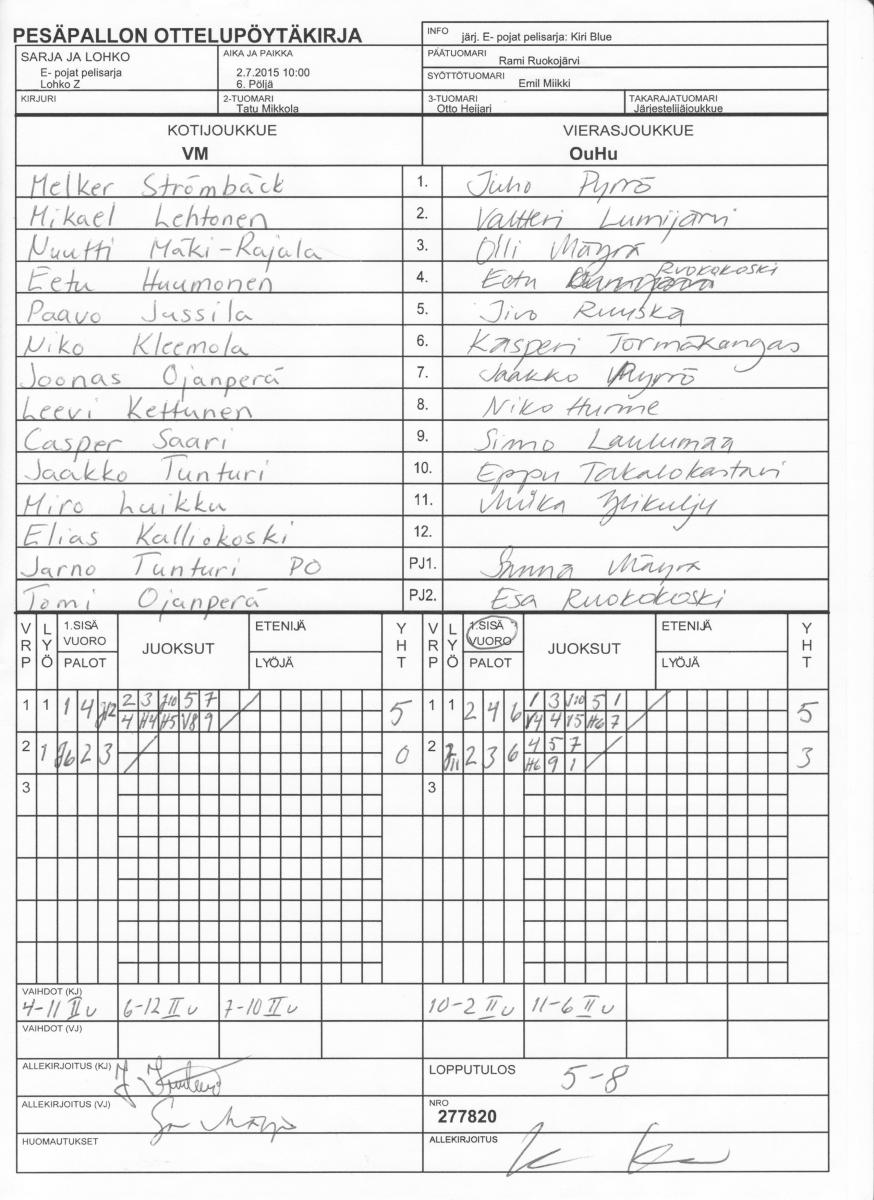 | Lohko O | 30.6.2015 15:00 | 2. Ahmo 1 | NaPe | Mahti | VM |