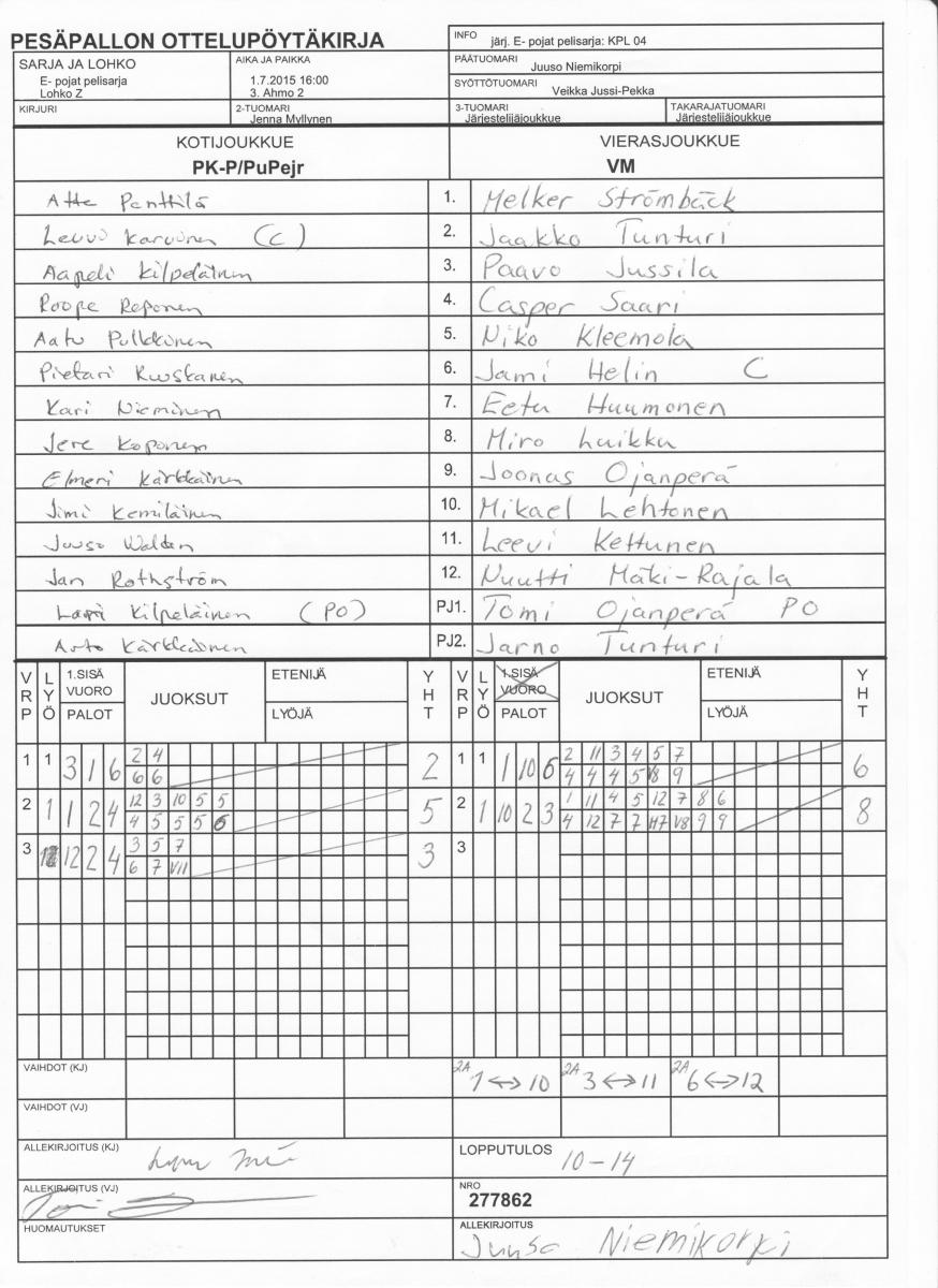 | 1.7.2015 16:00 | 3. Ahmo 2 | PK-P/PuPejr | VM | 10-14 | näytä |