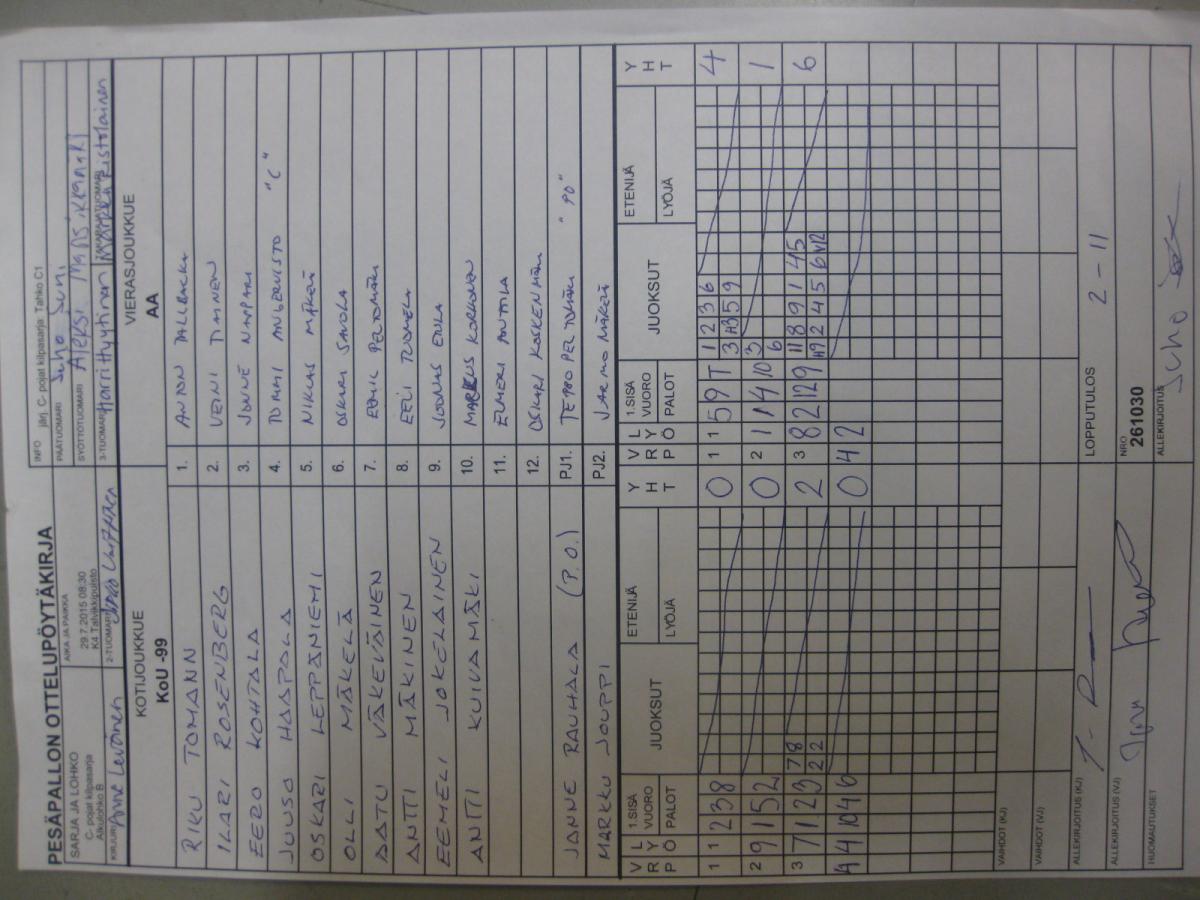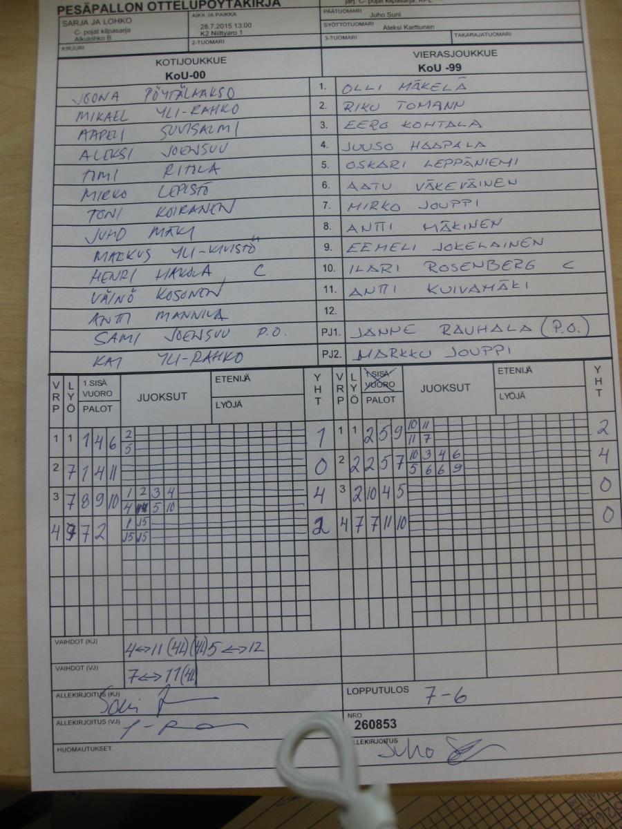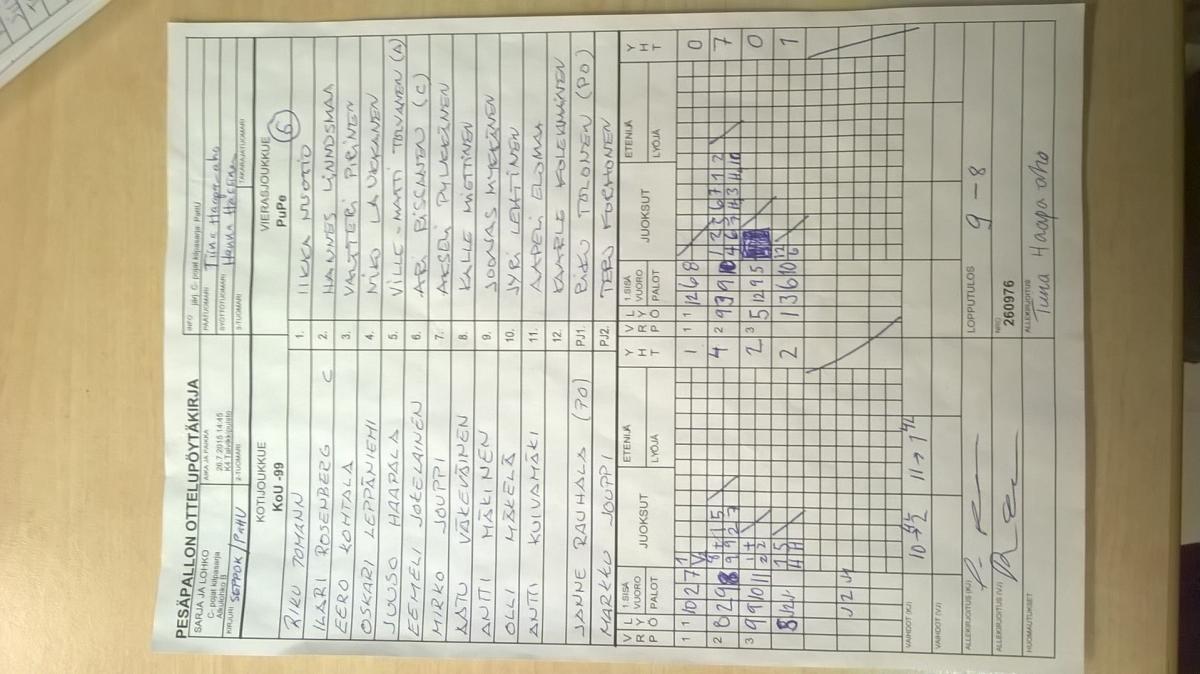| 31.7.2015 08:30 | K3 Niittyaro 2 | PuPe | KoU -99 | 6-2 |