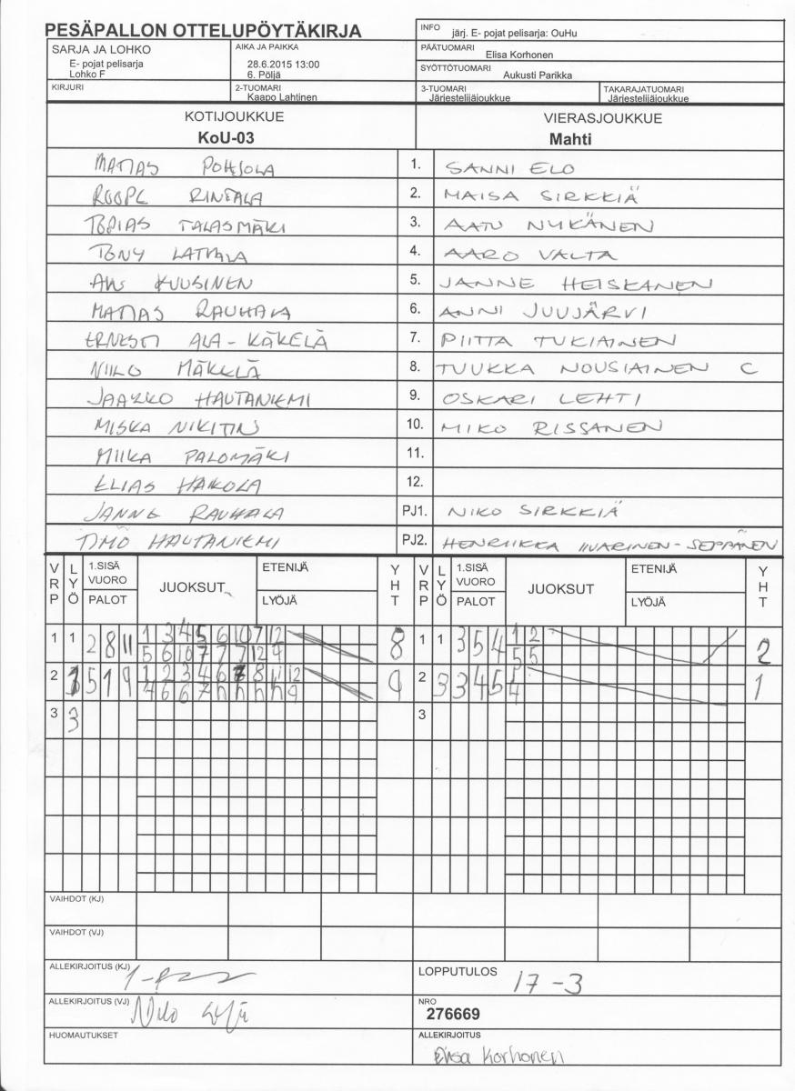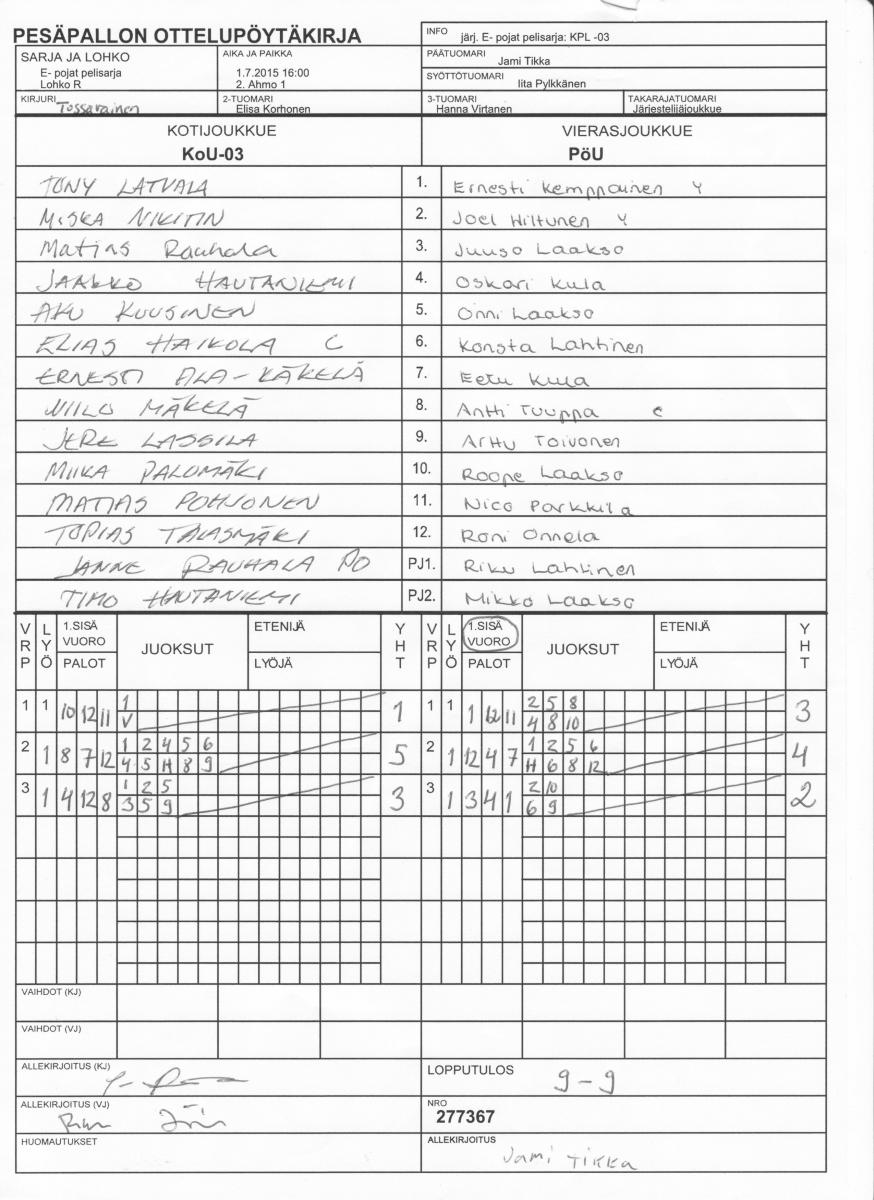 | Lohko M | 30.6.2015 15:00 | 5. Kuuslahti | PuPejr | PöU | KoU-03 |