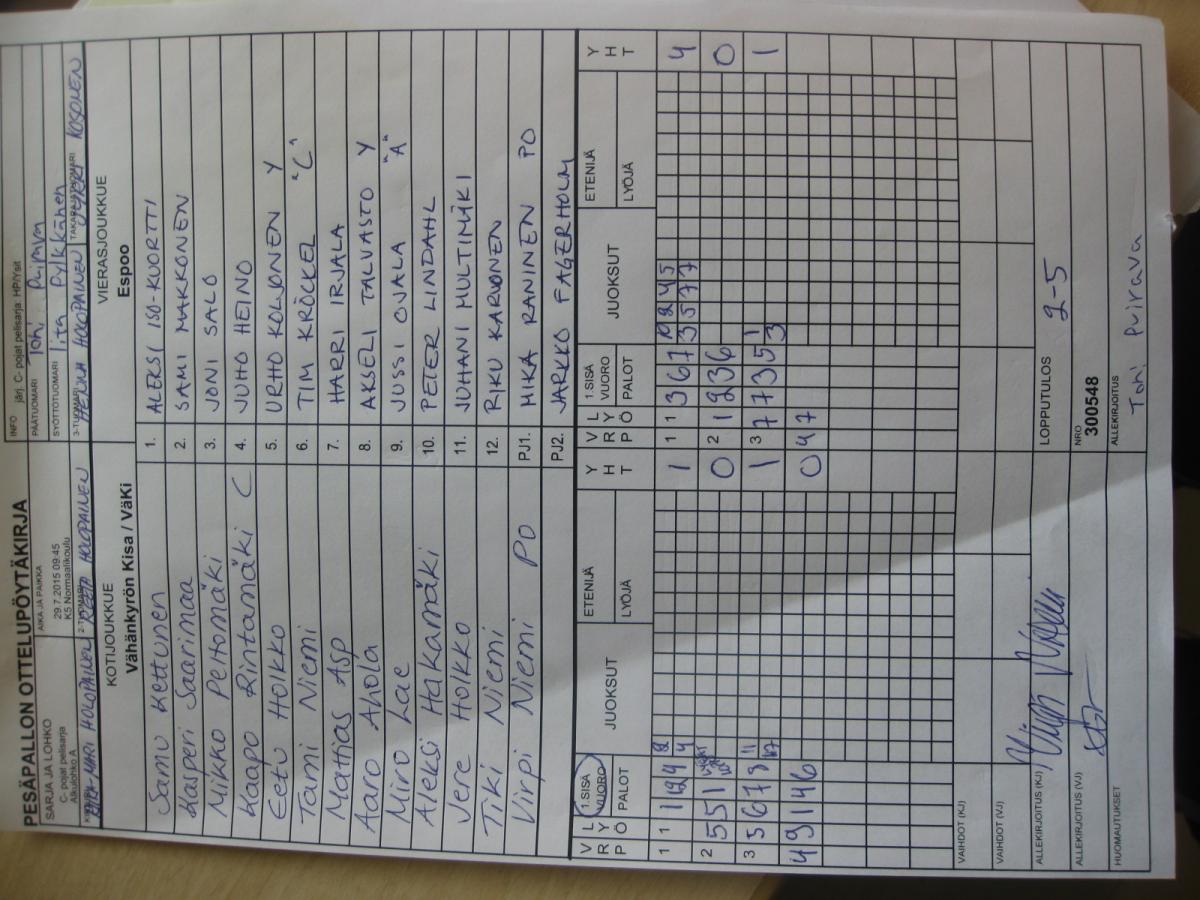 | 31.7.2015 08:30 | K5 Normaalikoulu | Espoo | Vähänkyrön Kisa / VäKi | 6-7 | näytä |
