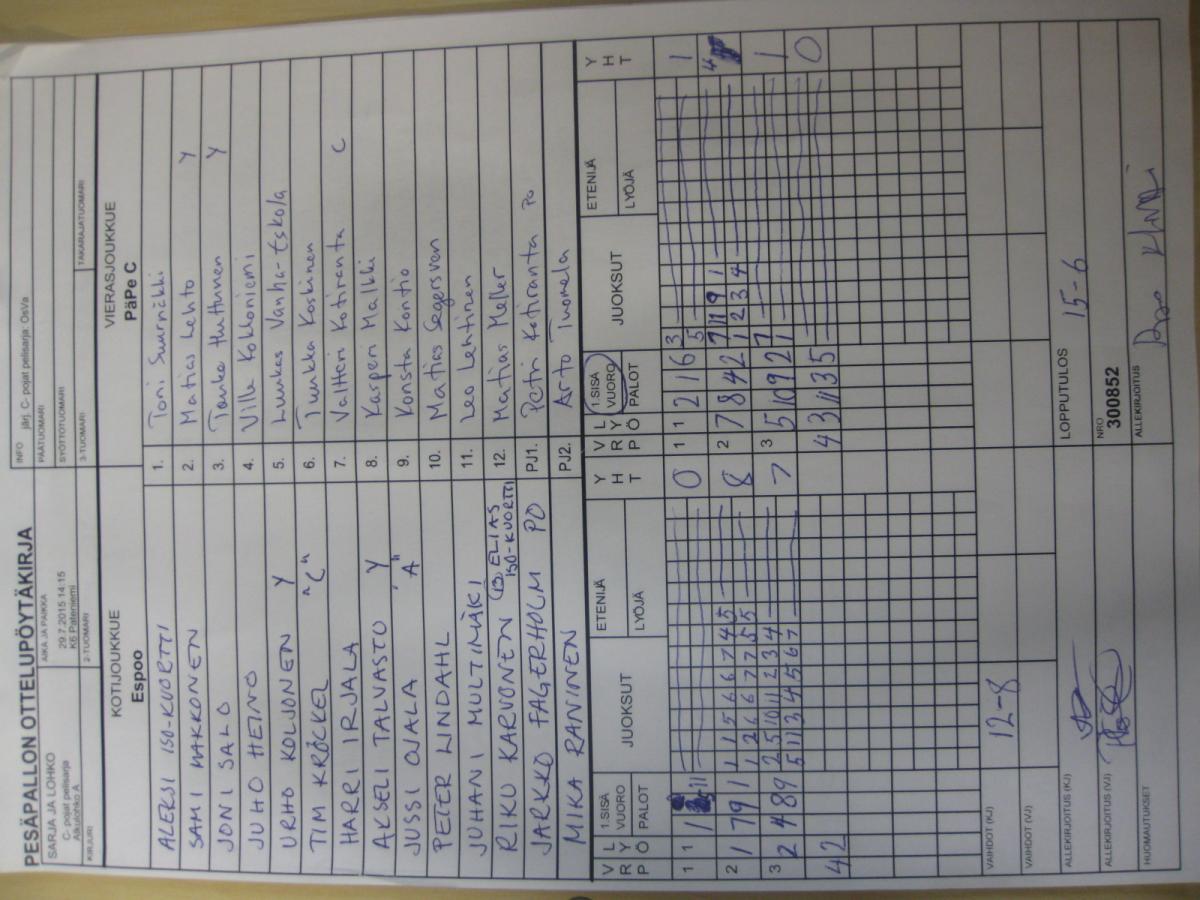 | 29.7.2015 14:15 | K6 Pateniemi | Espoo | PäPe C | 15-6 | näytä |