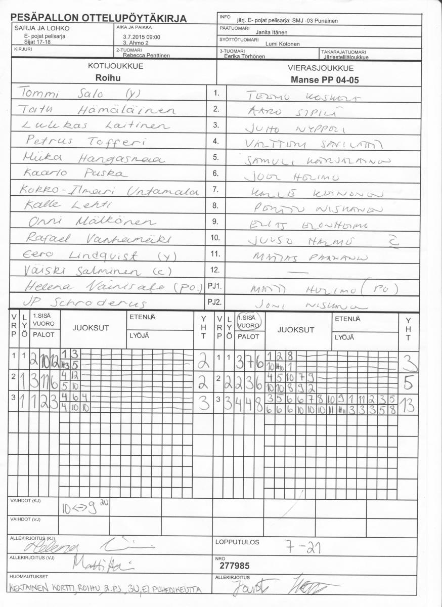 | Lohko Z | 2.7.2015 09:00 | 3. Ahmo 2 | PK-P/PuPejr | KeKi -04 | Manse PP 04-05 |