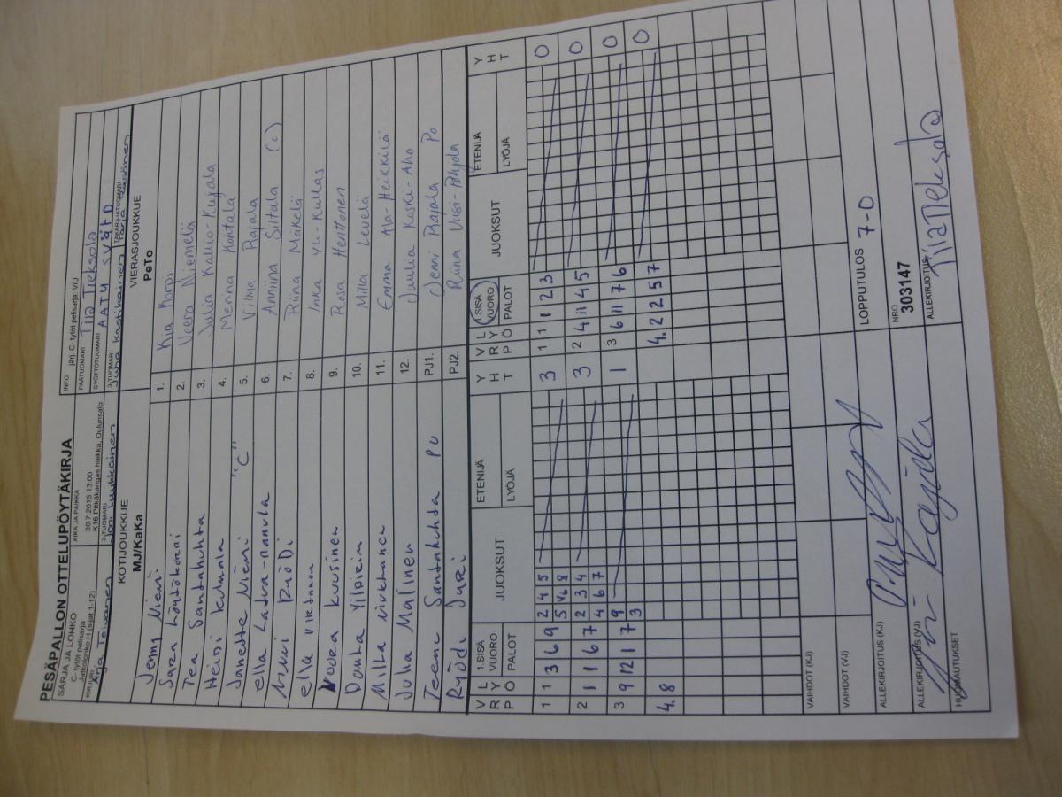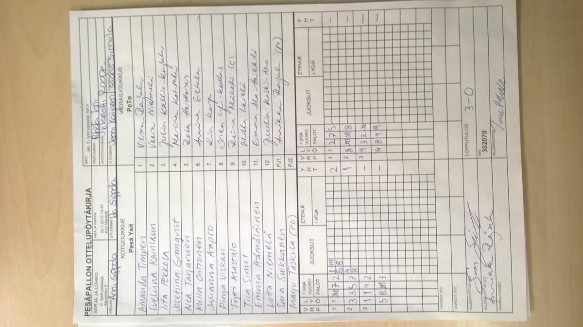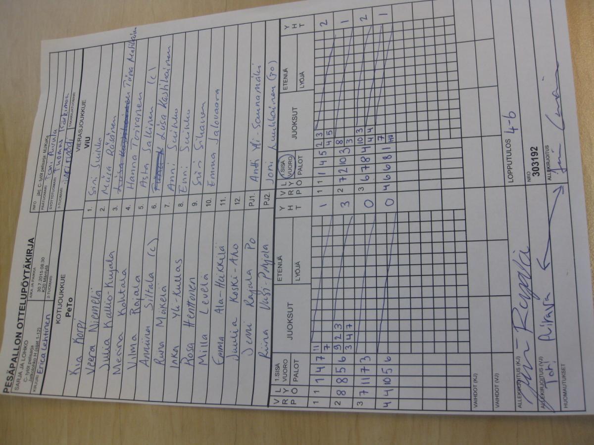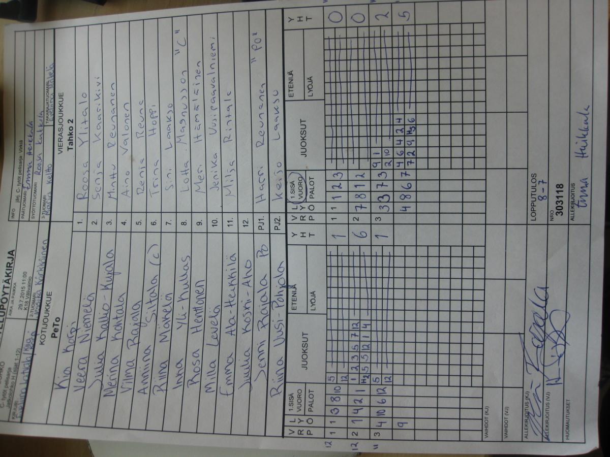 | Jatkolohko H (sijat 1-12) | 29.7.2015 14:15 | K19 Kaakkuri Hiekka | Tahko 2 | Mailajuniorit 2 | PeTo |