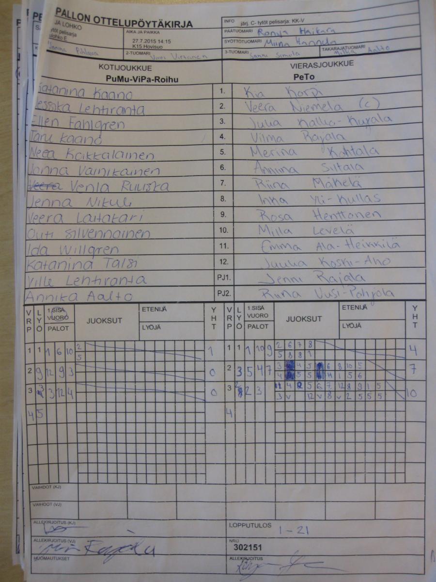 | 27.7.2015 14:15 | K15 Hovisuo | PuMu-ViPa-Roihu | PeTo | 1-21 | näytä |