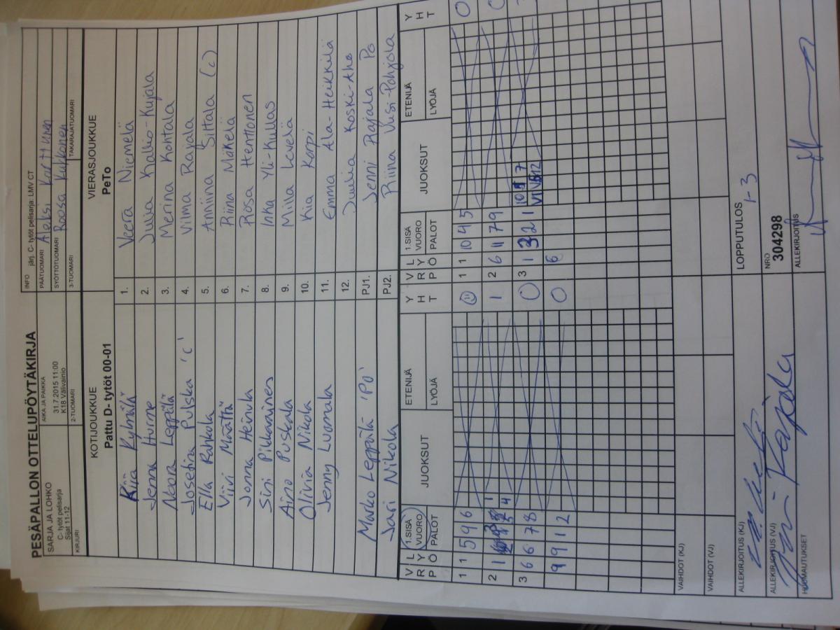 | Jatkolohko G (sijat 1-12) | 28.7.2015 18:30 | K18 Välivainio | PöU | Pesä Ysit | PeTo |