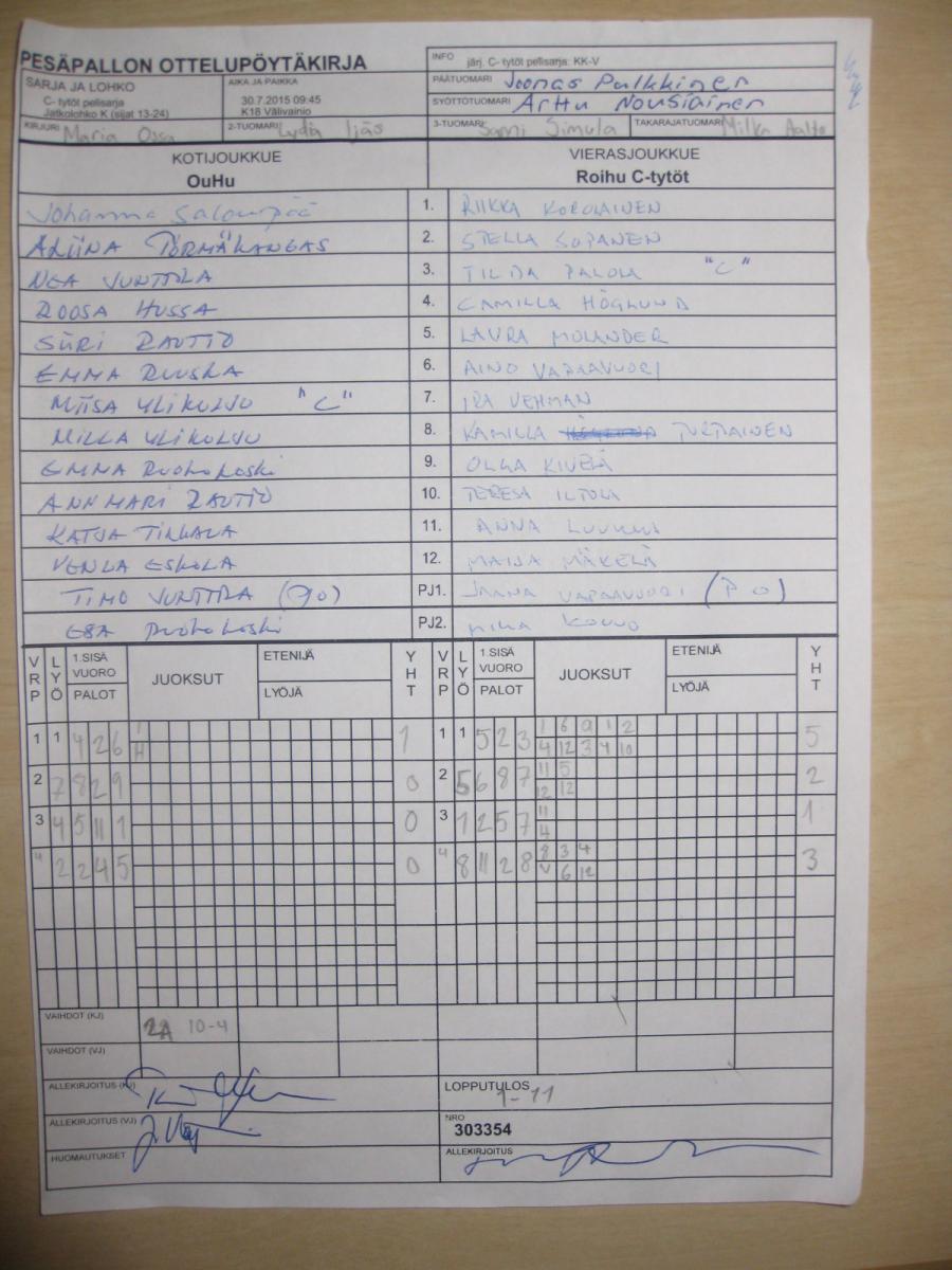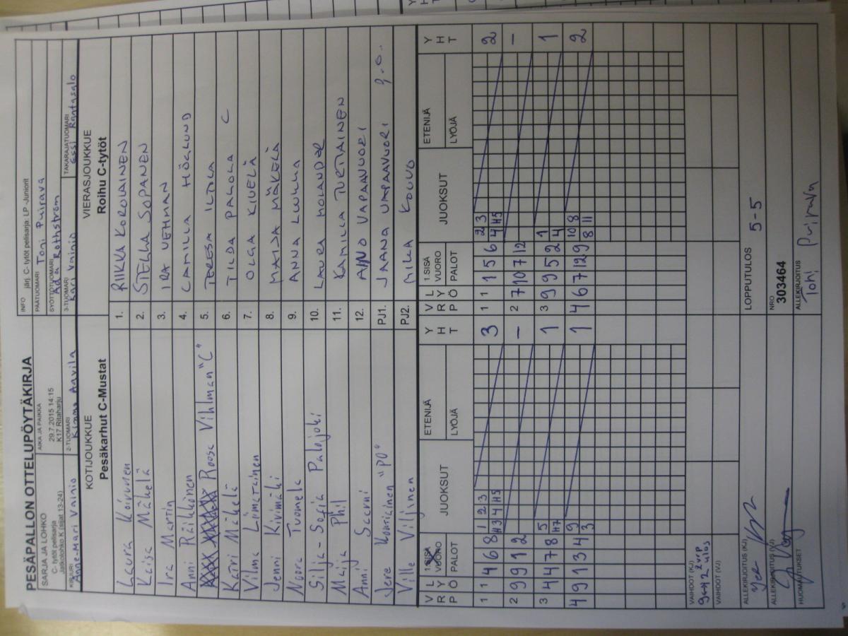 | Jatkolohko K (sijat 13-24) | 30.7.2015 11:00 | K18 Välivainio | KPK | Pesäkarhut C-Mustat | Roihu C-tytöt |