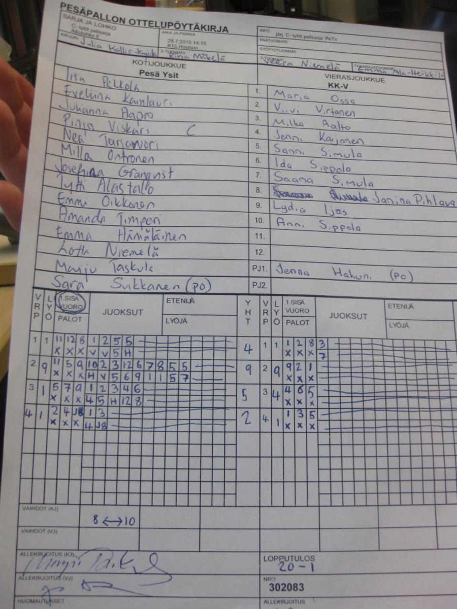 | 28.7.2015 14:15 | K15 Hovisuo | Pesä Ysit | KK-V | 20-1 | näytä |