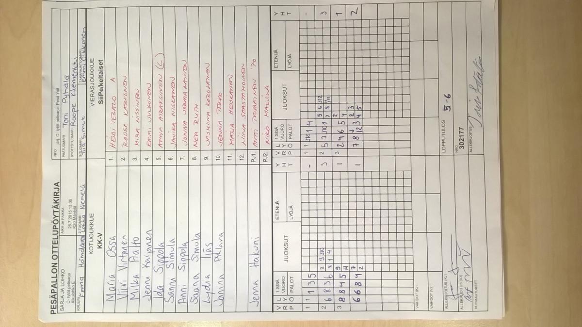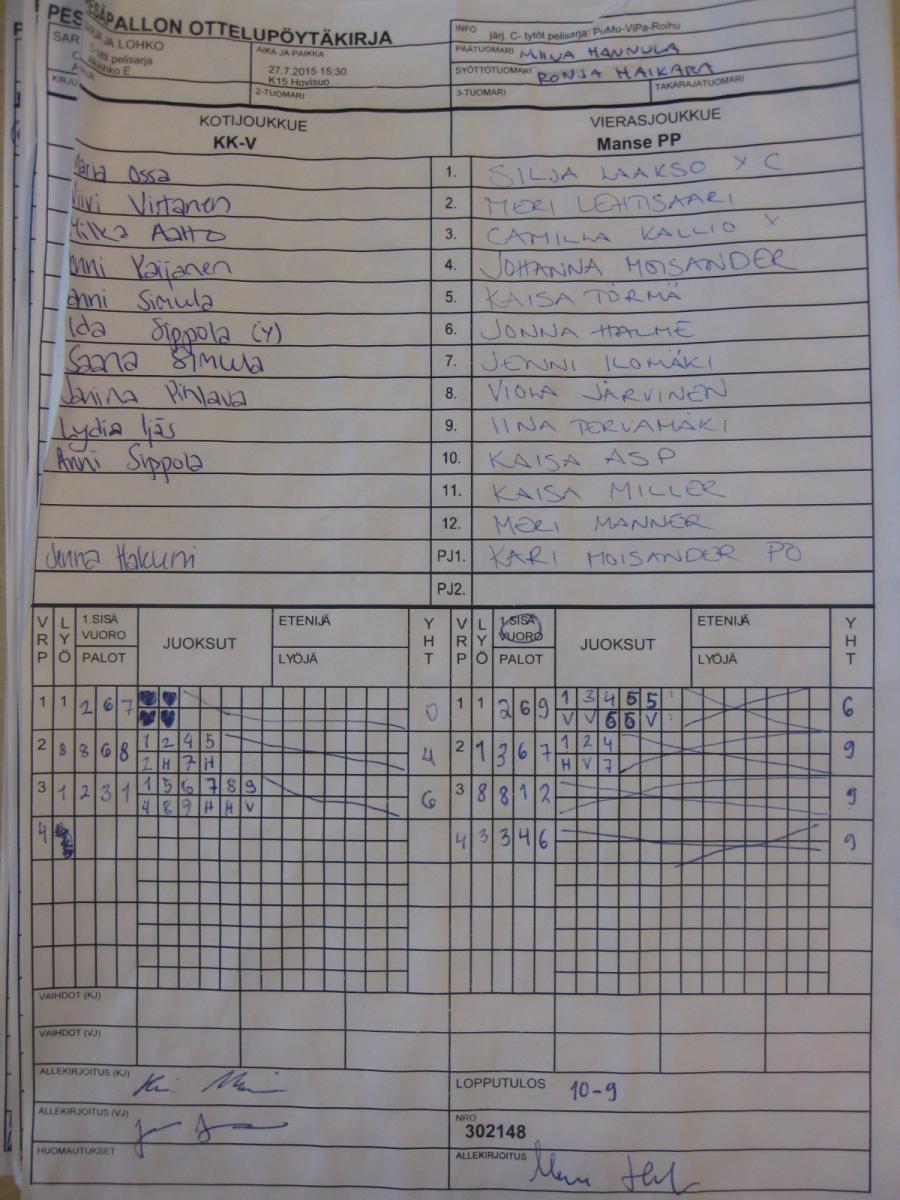 | 26.7.2015 13:00 | K20 Mäntylä | KK-V | SiiPe/keltaiset | 5-6 | näytä |