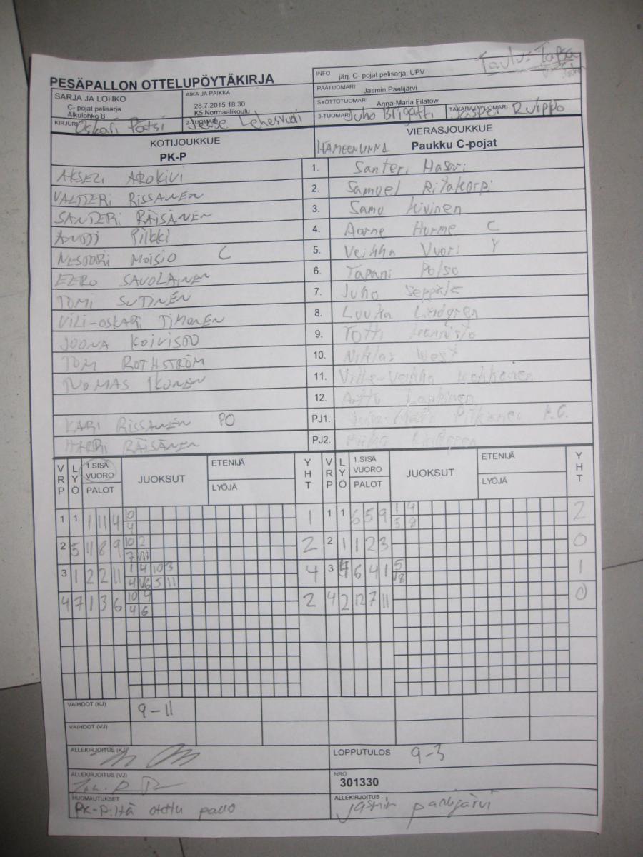 | C- pojat pelisarja - Alkulohko B | 28.7.2015 17:15 | K5 Normaalikoulu | UPV | Tahko C3 | PK-P |