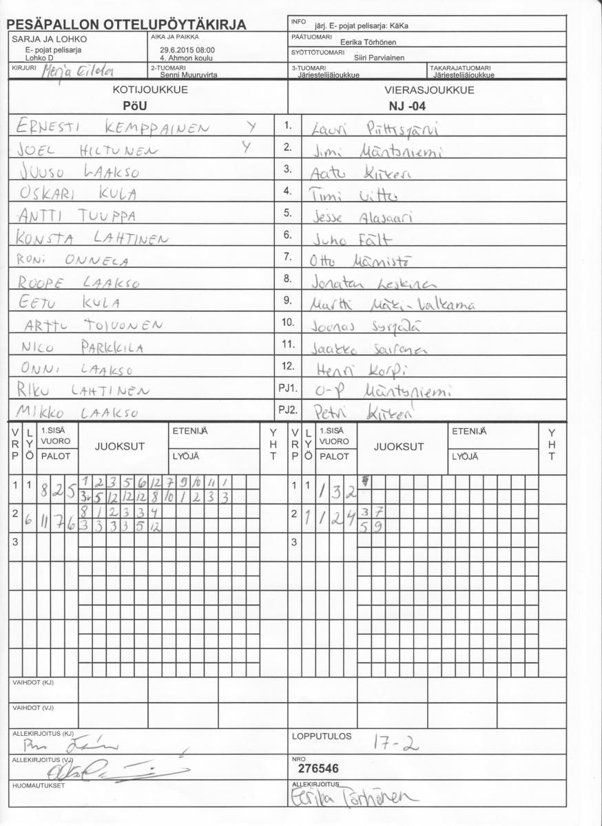 | Lohko J | 30.6.2015 08:00 | 4. Ahmon koulu | PattU -04 | EuVe | PöU |