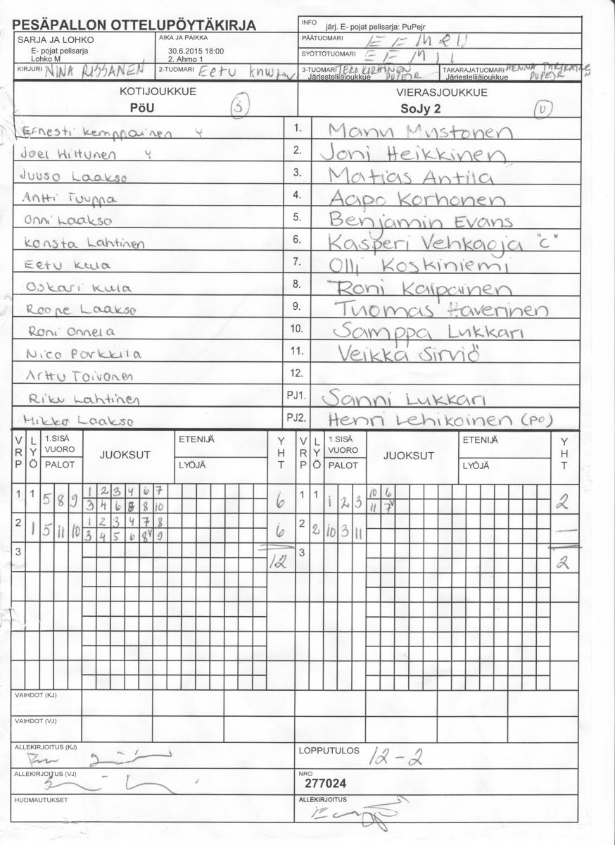 | Lohko R | 1.7.2015 15:00 | 2. Ahmo 1 | KPL -03 | KeKi E-03 | PöU |