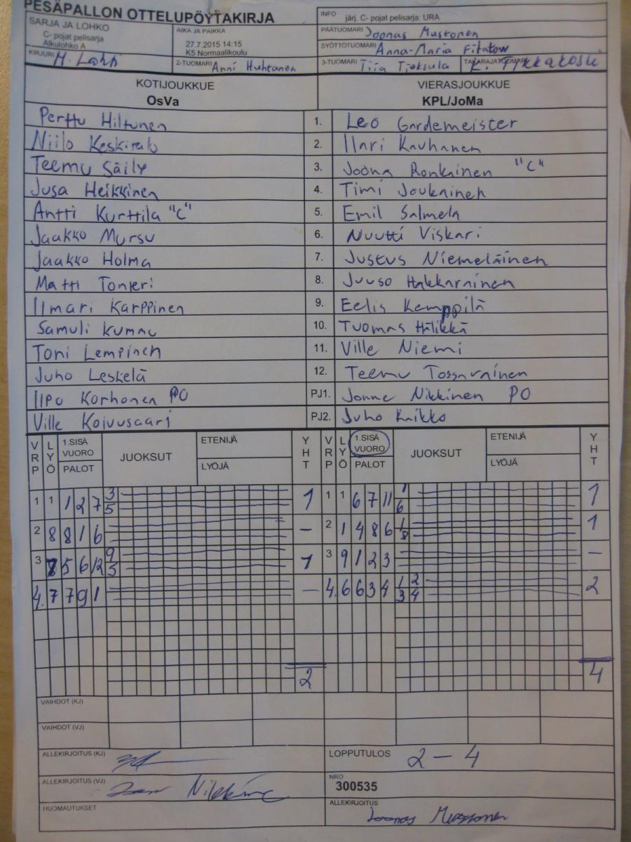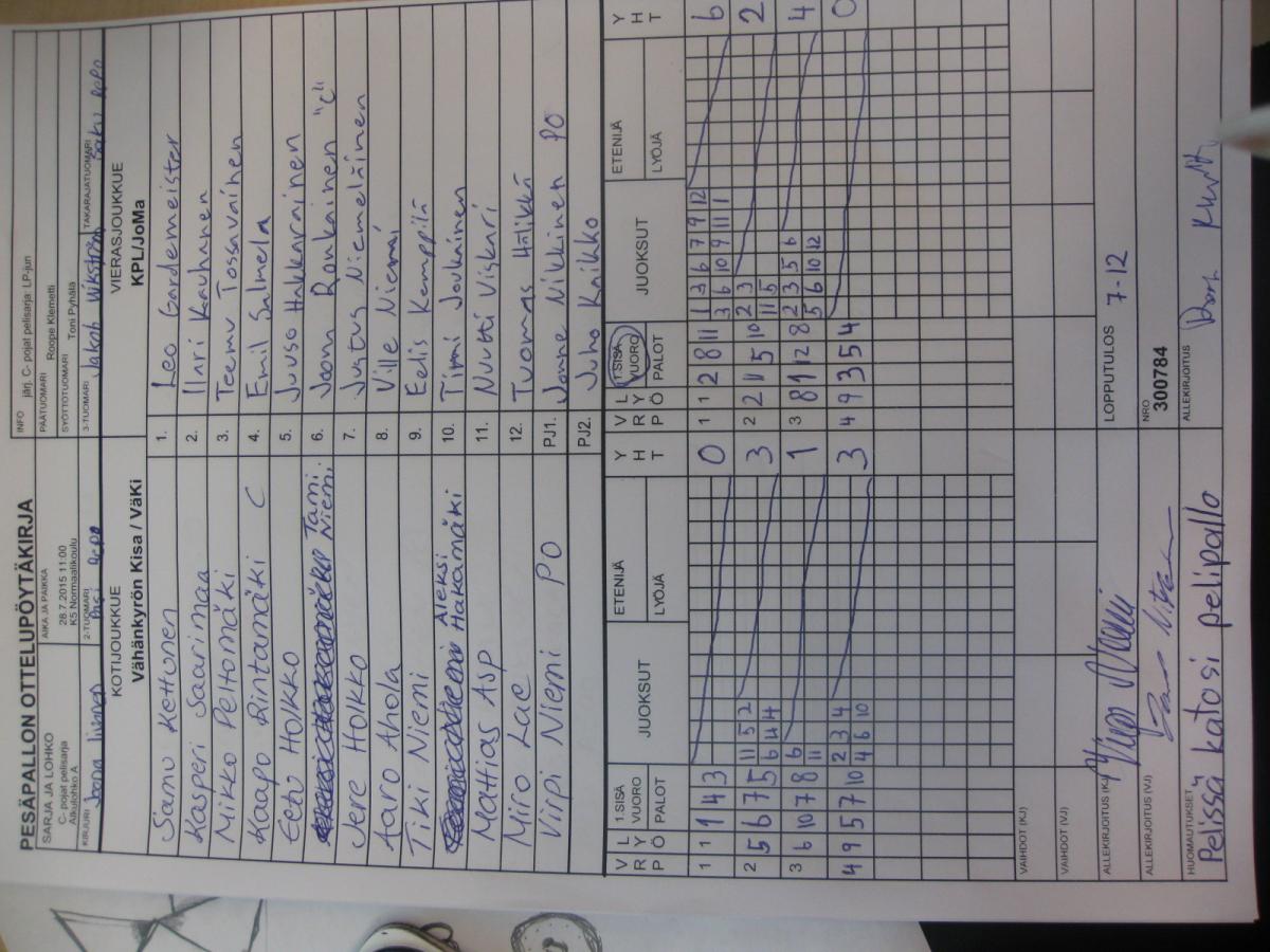 | Sijat 13-14 | 31.7.2015 08:30 | K5 Normaalikoulu | Espoo | Vähänkyrön Kisa / VäKi | KPL/JoMa |