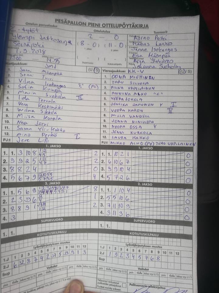 | 1.9.2018 13:00 | SMJ | KK-V | 2-0 (8-0, 11-0) | näytä | |