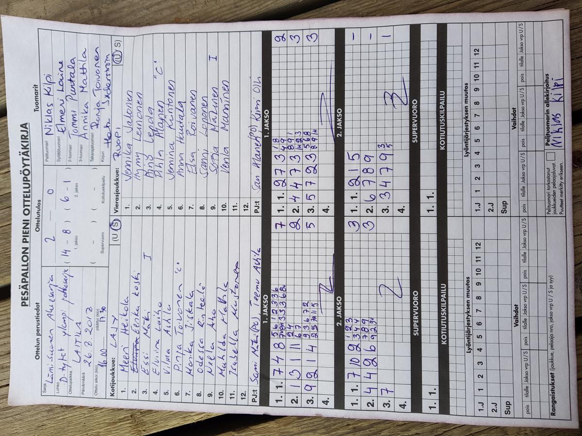 | 26.8.2018 16:00 | LaJy | RuoPi mustat | 2-0 (14-8, 6-1) | näytä |