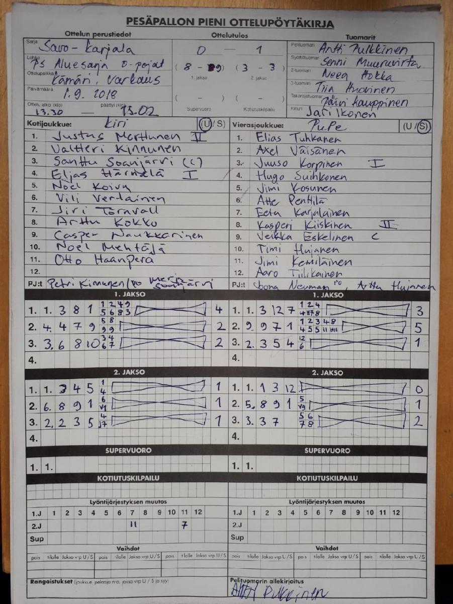 | 1.9.2018 14:00 | Varkaus | Kiri/w | PuPe 1 | 0-1 (8-9, 3-3) | näytä |